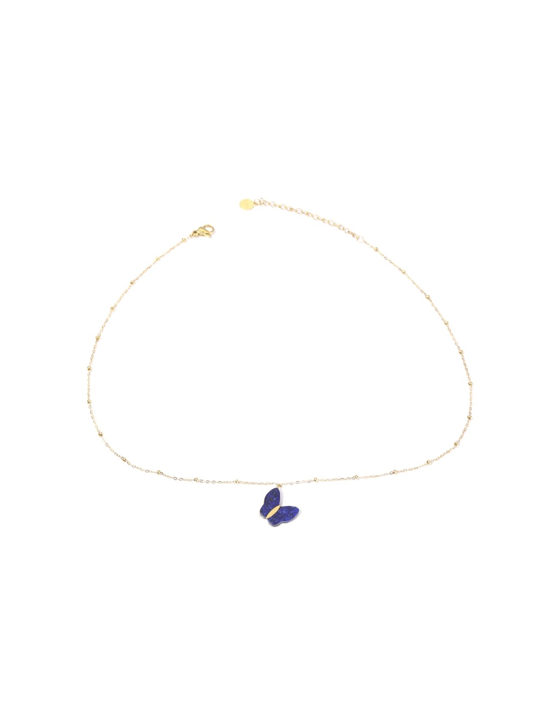Collar de cadena dorada con un colgante de mariposa de diseño minimalista, con líneas suaves y simples que evocan elegancia y sutileza. La mariposa, sin adornos excesivos, aporta un toque delicado y moderno, perfecto para quienes buscan una pieza discreta pero llena de significado.