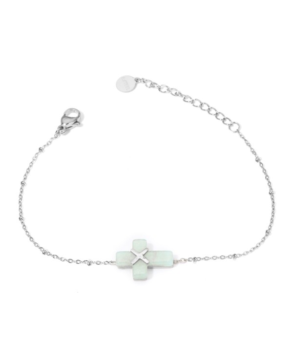 Pulseras de cadena plateada con un colgante de cruz de diseño minimalista, con líneas suaves y simples que evocan elegancia y sutileza. El cruz, sin adornos excesivos, aporta un toque delicado y moderno, perfecto para quienes buscan una pieza discreta pero llena de significado.
