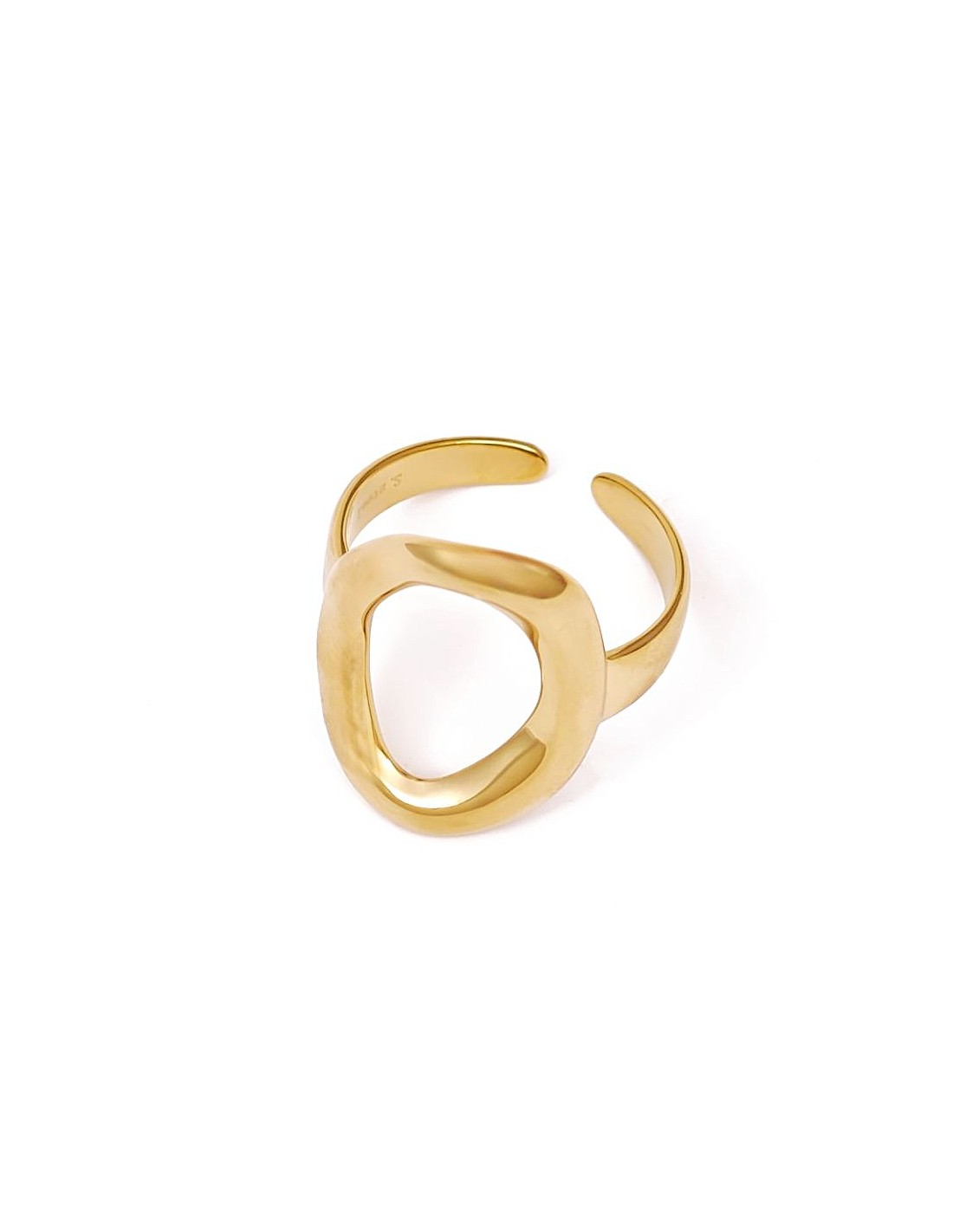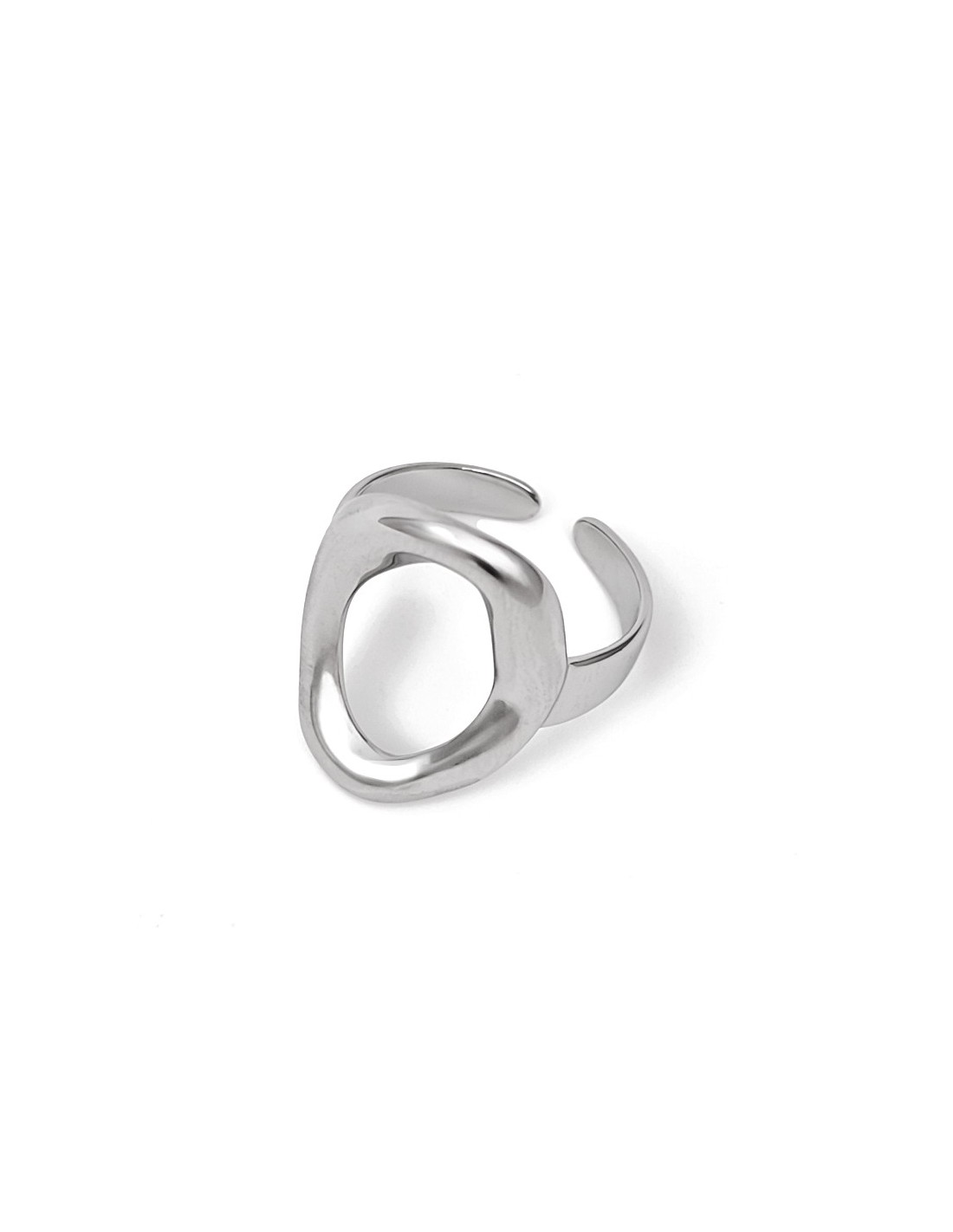 Anillo con diseño abierto y forma geométrica irregular. Su acabado brillante y moderno lo convierte en una pieza original y elegante, perfecta para destacar en cualquier ocasión.