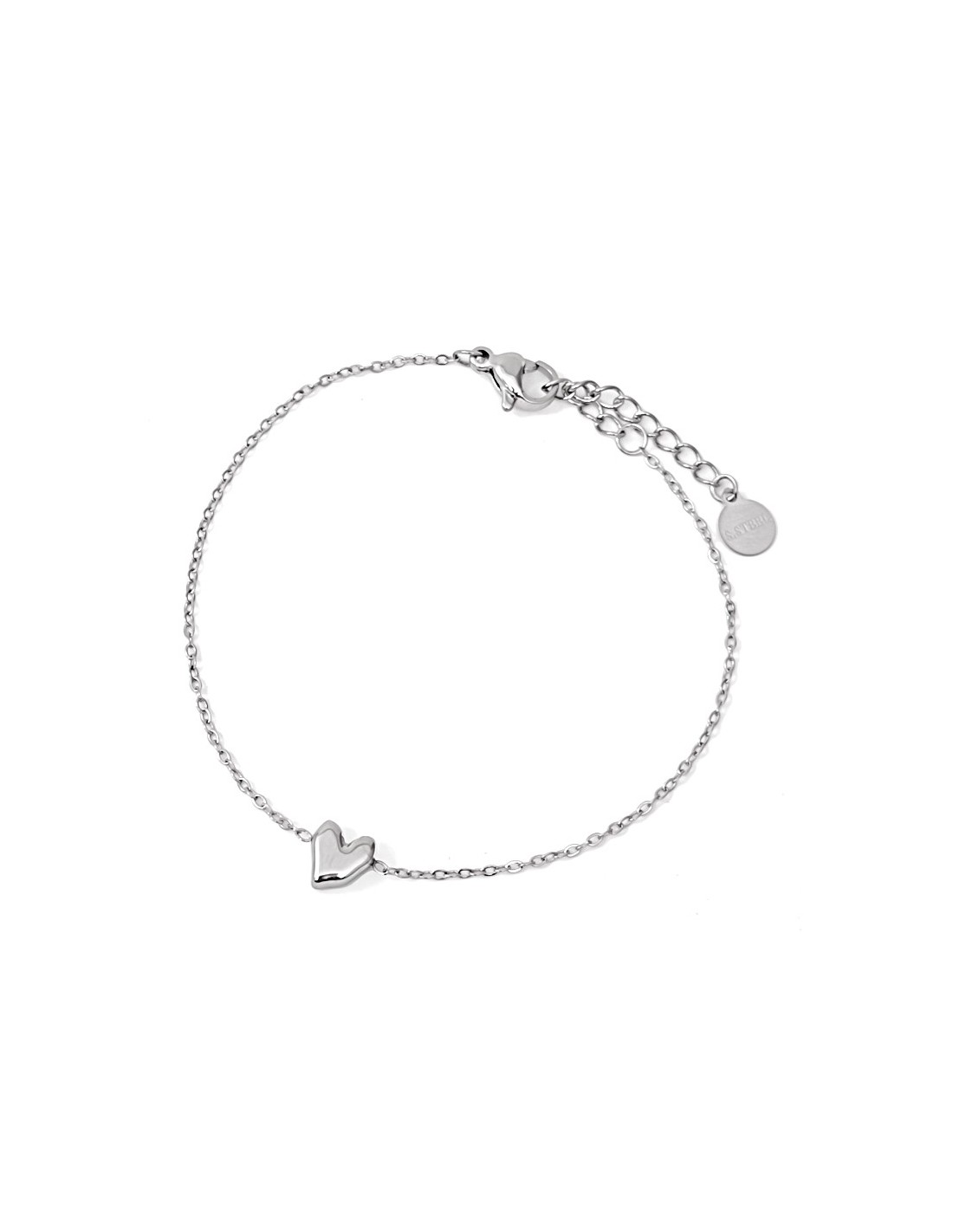 Pulsera plateada con un diseño minimalista y elegante de corazón, con un acabado liso y pulido. Su estilo elegante y versátil la hace ideal para cualquier ocasión.