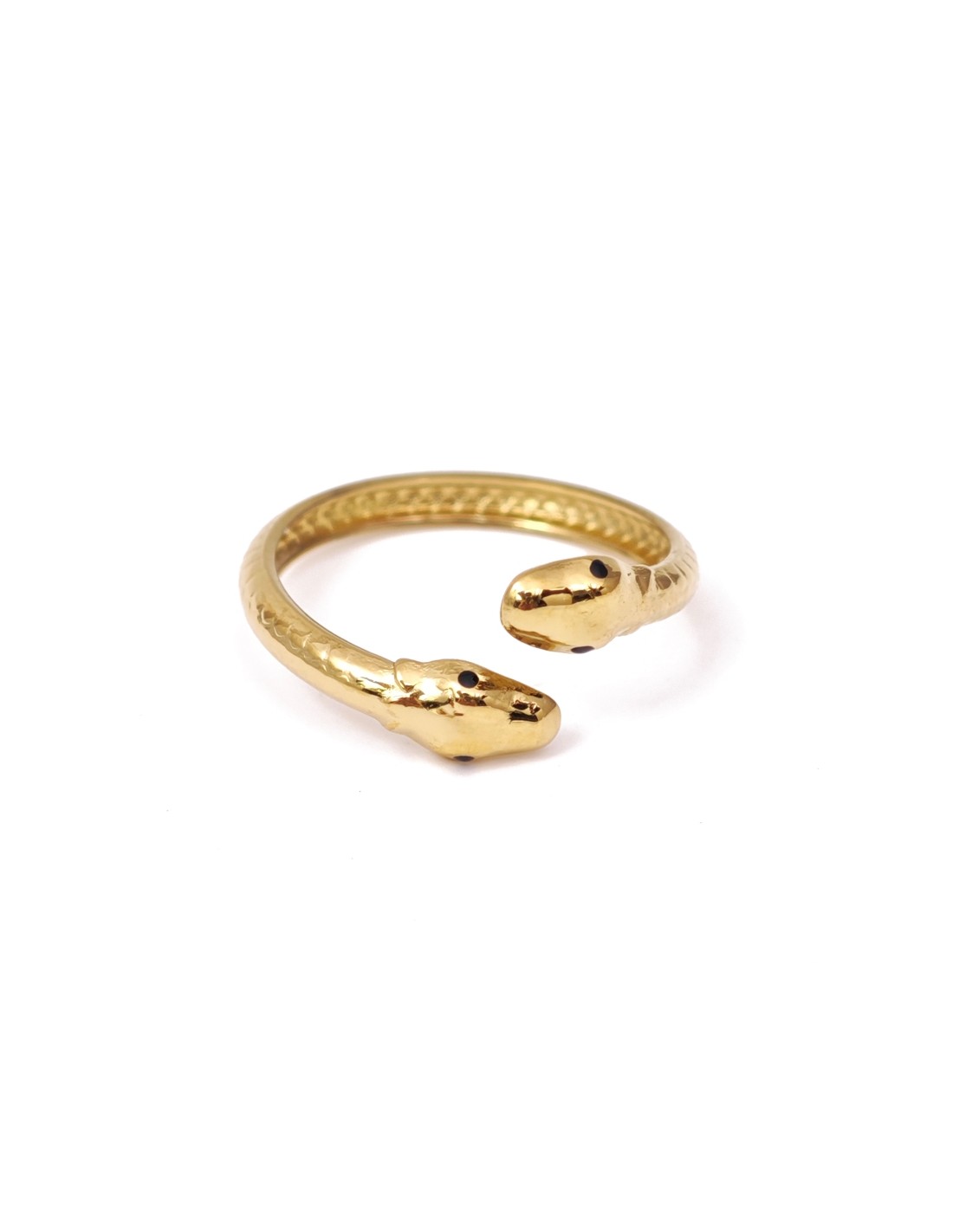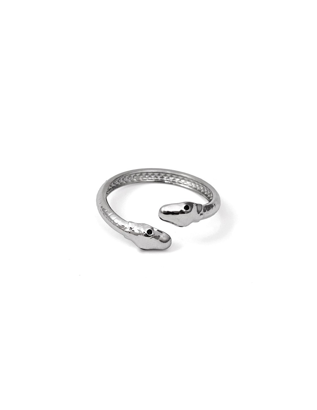Anillo con diseño de doble cabeza de serpiente y detalles de escamas en la superficie. Una joya con aire místico y poderoso, perfecta para quienes buscan un accesorio llamativo y lleno de personalidad.