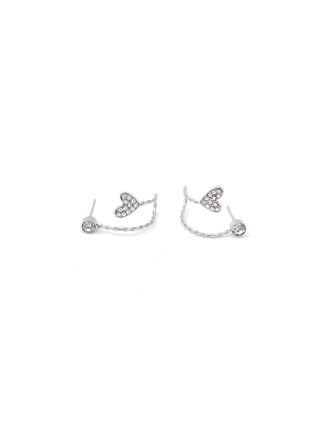 Pendientes plateados con diseño delicado, formados por un corazón cubierto de circonitas y un detalle brillante en el extremo. Un accesorio romántico y sutil que aporta elegancia en cualquier ocasión.