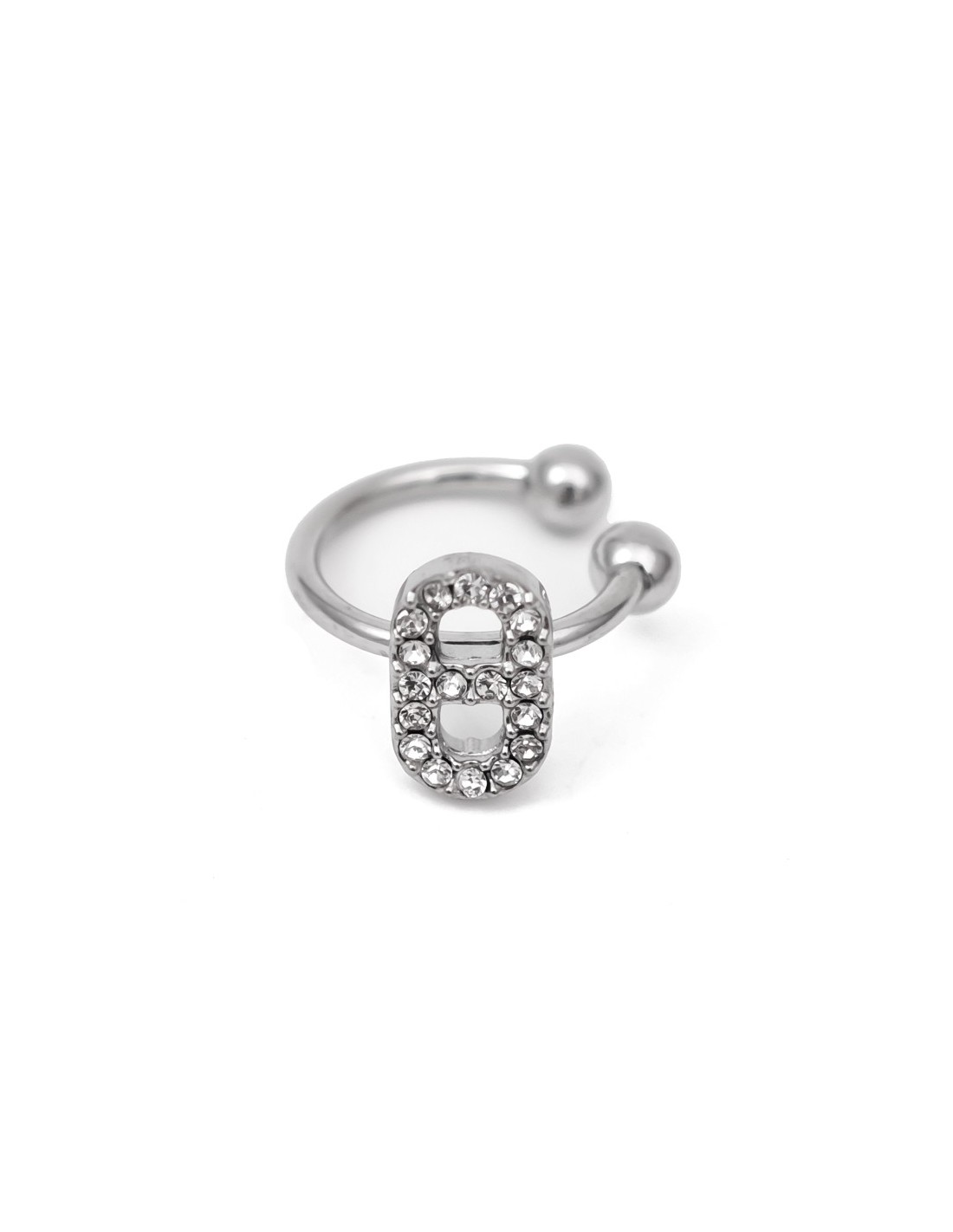 Clip de oreja plateado de con diseño de nariz de cerdito y circonitas