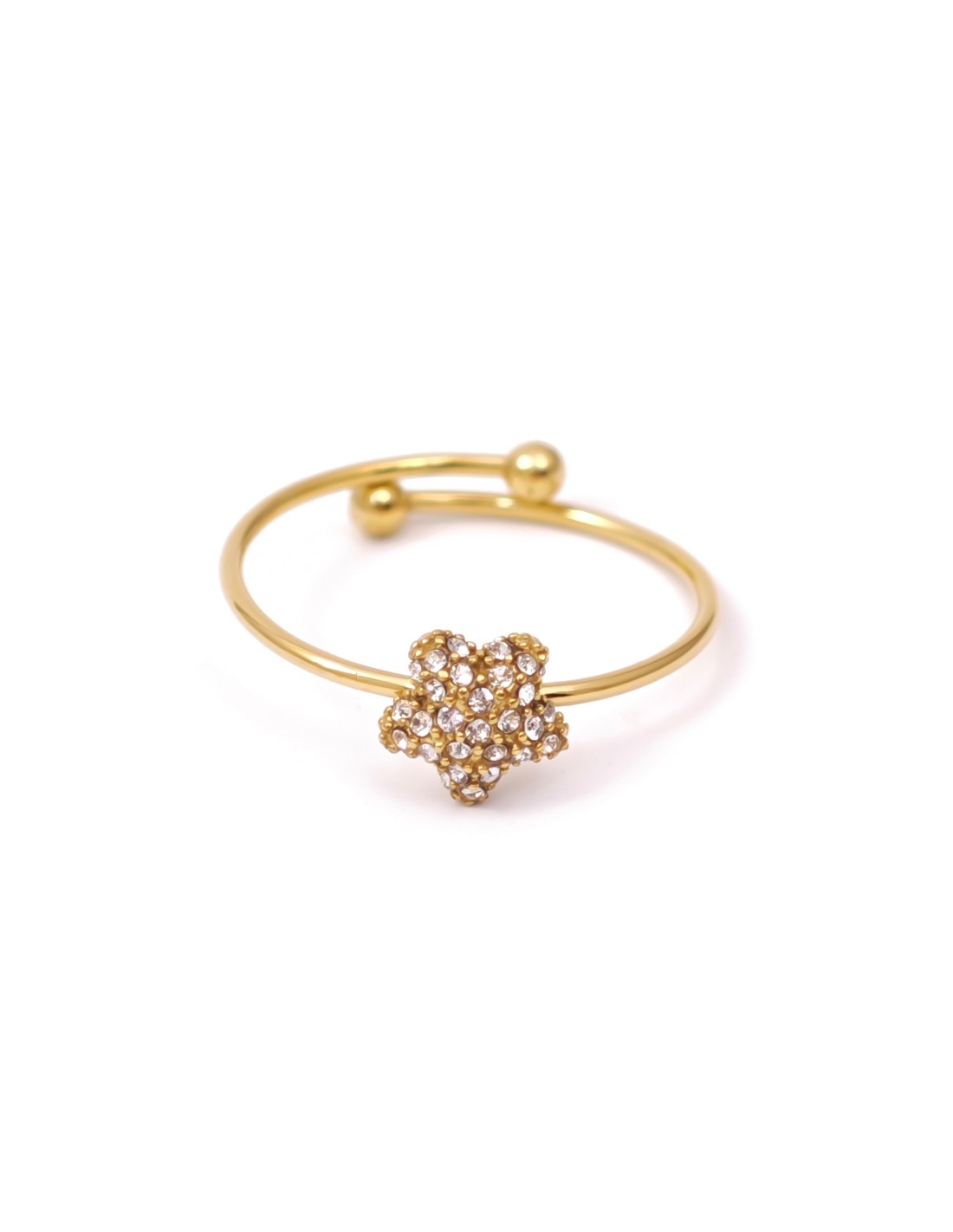 Anillo ajustable con diseño de flor, completamente decorada con circonitas brillantes. Su estilo moderno y versátil lo convierte en un accesorio ideal tanto para ocasiones especiales como para el día a día.