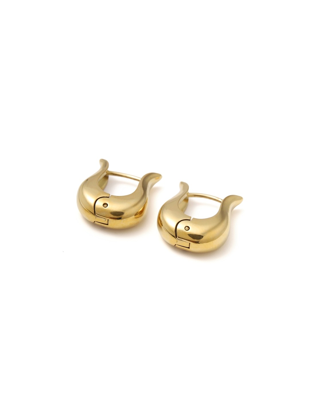 Pendientes de aro con un diseño grueso y curvado que aporta un aire escultórico y retro. Su acabado pulido ofrece un brillo sofisticado, perfectos para destacar en cualquier ocasión.