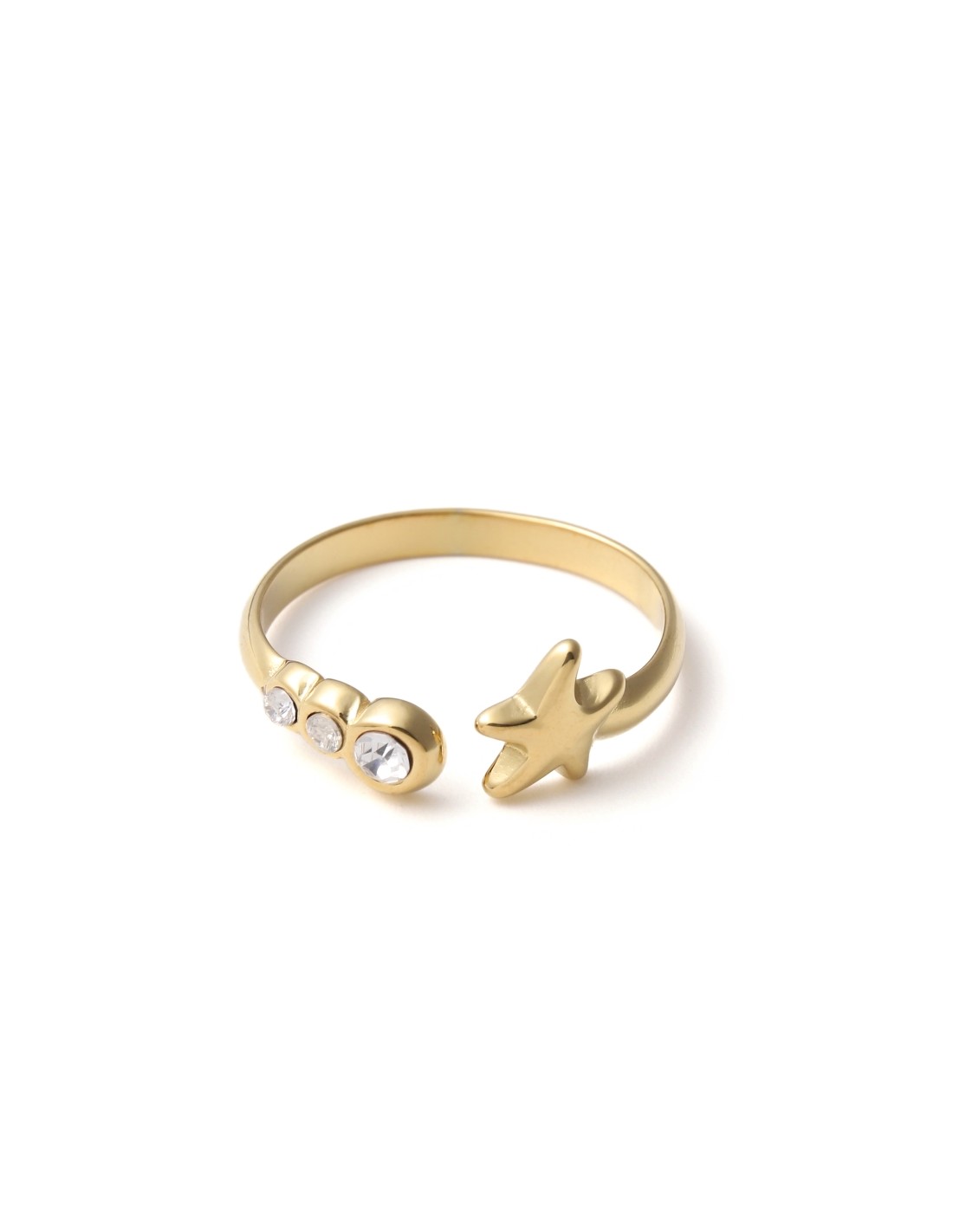 Inspirado en el mar, este anillo en forma de estrella de mar se adorna con circonitas brillantes que aportan frescura y movimiento. El acabado aporta elegancia, mientras que el diseño abierto asegura comodidad, evocando la esencia del verano y la brisa marina.