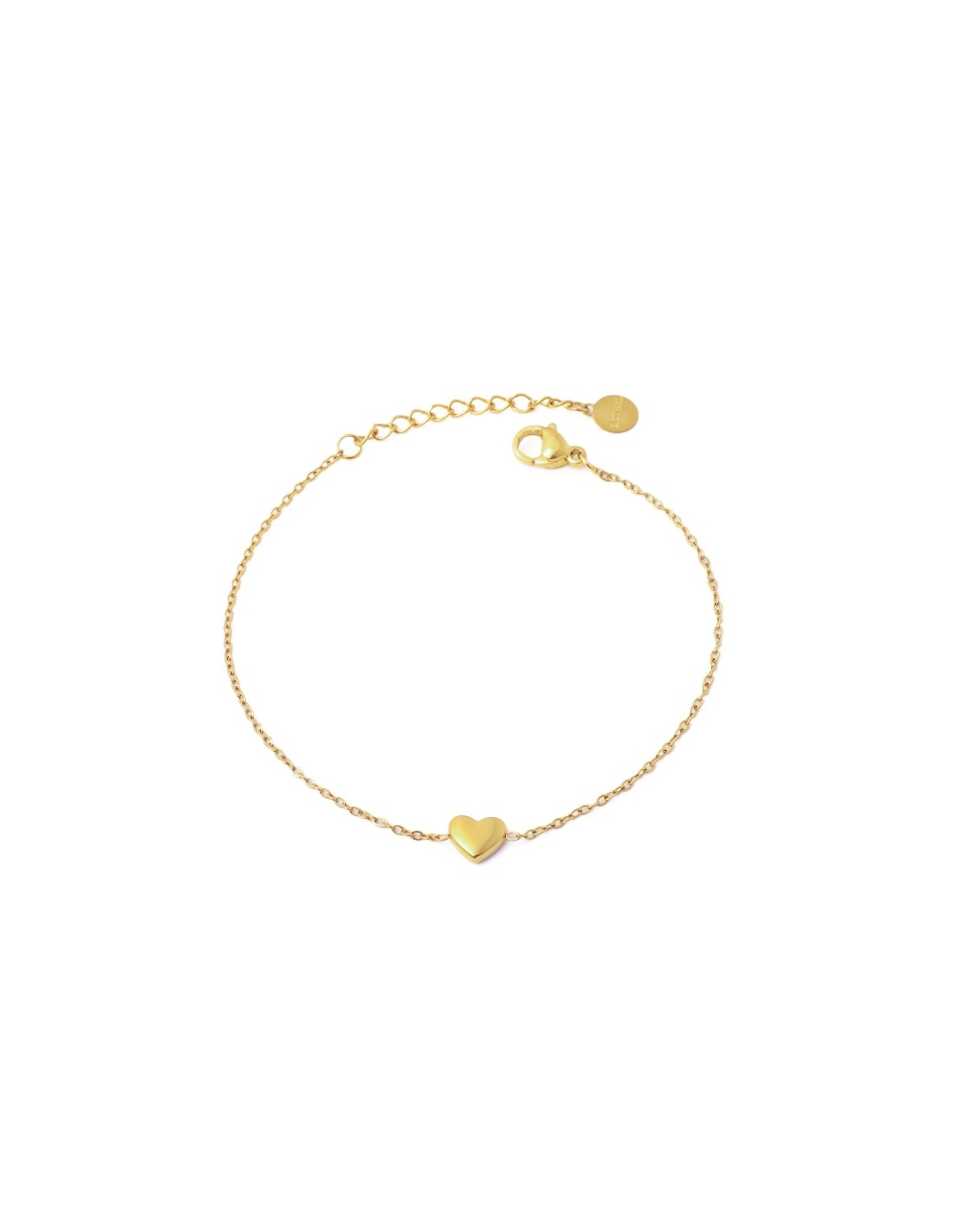Pulsera fina dorada con un pequeño colgante en forma de corazón. Su diseño sencillo y delicado la convierte en un accesorio ideal para el día a día o como detalle especial.