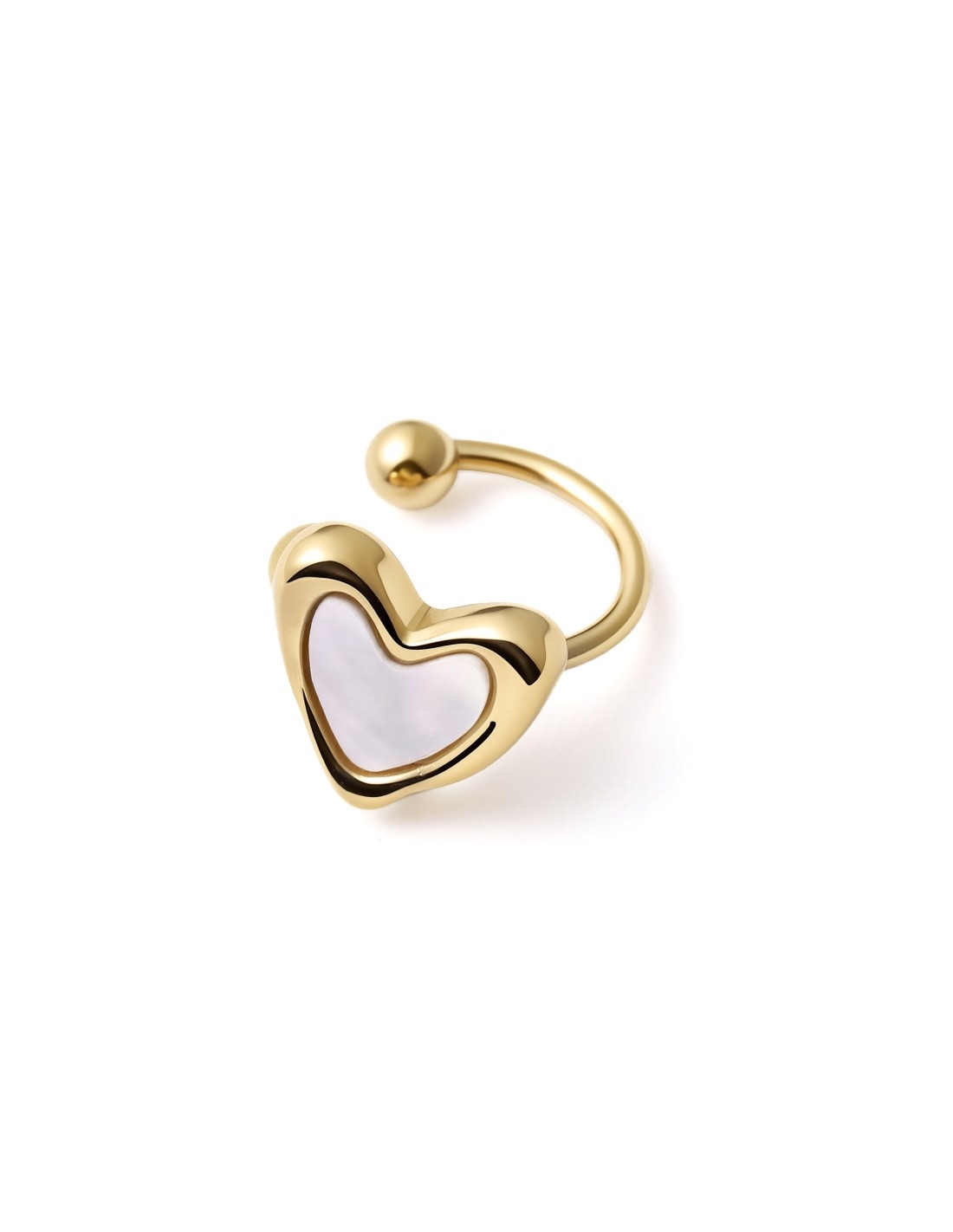 Clip de oreja con diseño de corazón y detalle de nácar en el centro. Una pieza elegante y femenina que combina brillo metálico con la suavidad del acabado nacarado.