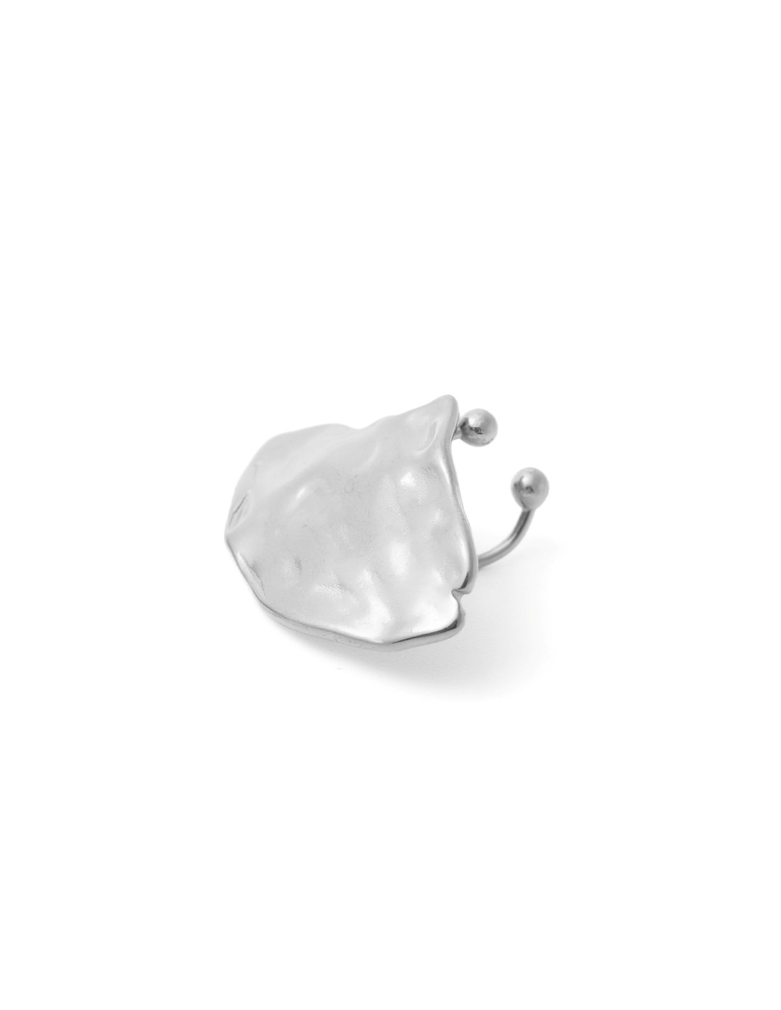 Clip de oreja con forma de hoja de líneas irregulares y textura ondulada. Un diseño artístico y contemporáneo que destaca por su elegancia natural.