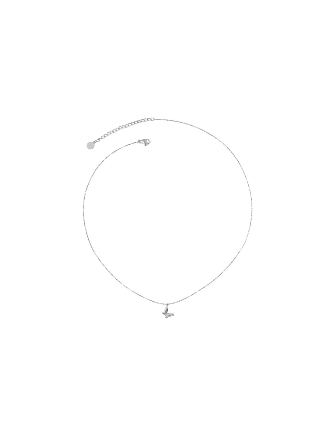 Collar fino en color plateado con un delicado colgante en forma de mariposa. Su diseño sutil y elegante refleja ligereza y feminidad, ideal para llevar en cualquier ocasión.