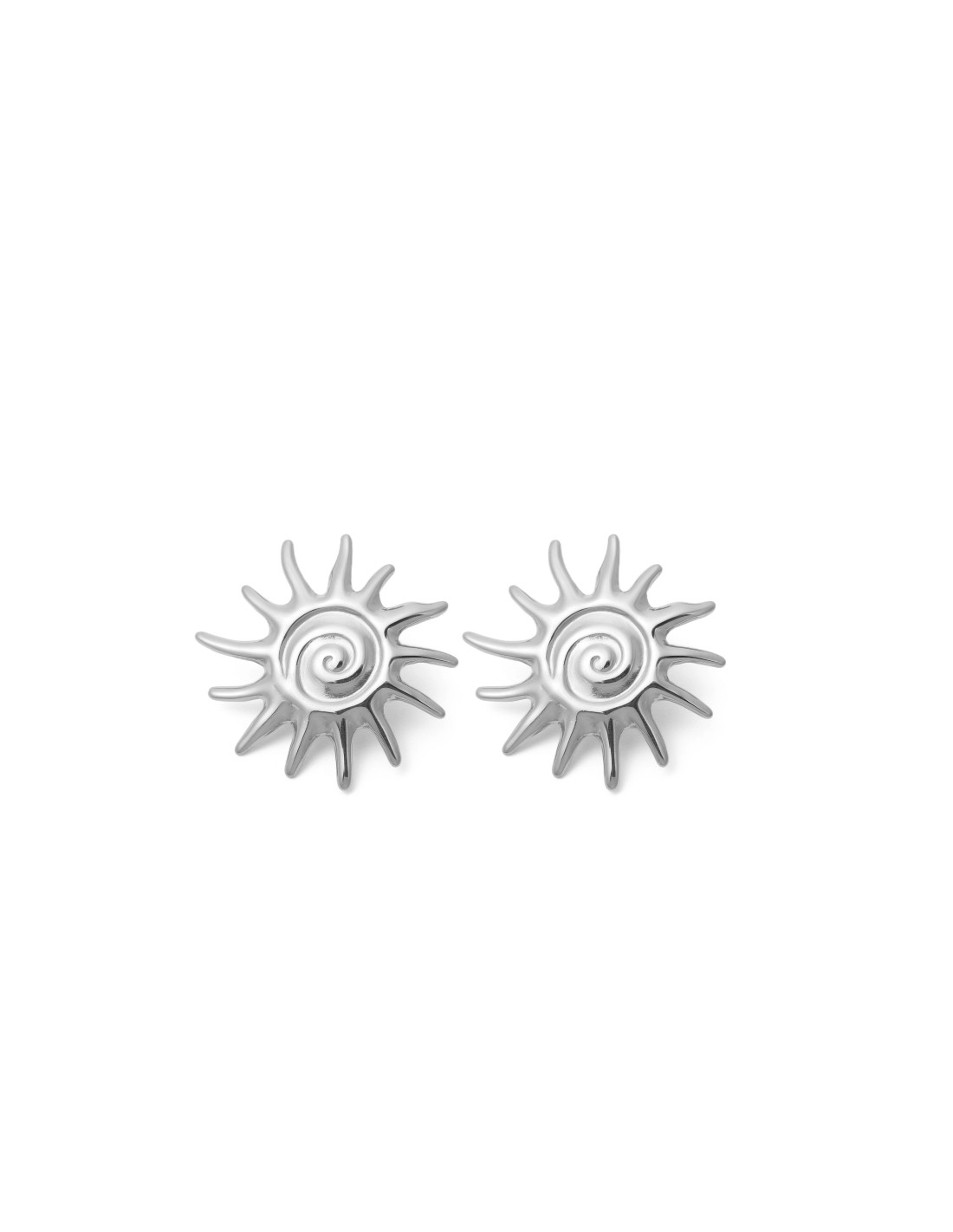Pendientes plateados de estilo botón con forma de sol en espiral. Su diseño radiante y moderno combina energía y elegancia, aportando un toque distintivo y luminoso al rostro. Perfectos para destacar tanto en looks casuales como en ocasiones especiales.