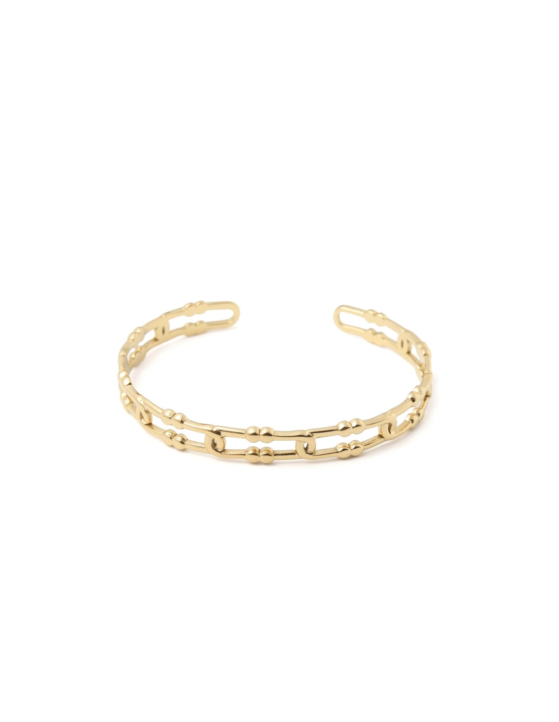 Pulsera rígida dorada con un elegante diseño de doble cadena entrelazada. Su acabado brillante y líneas limpias aportan un aire contemporáneo que combina perfectamente con cualquier look.
