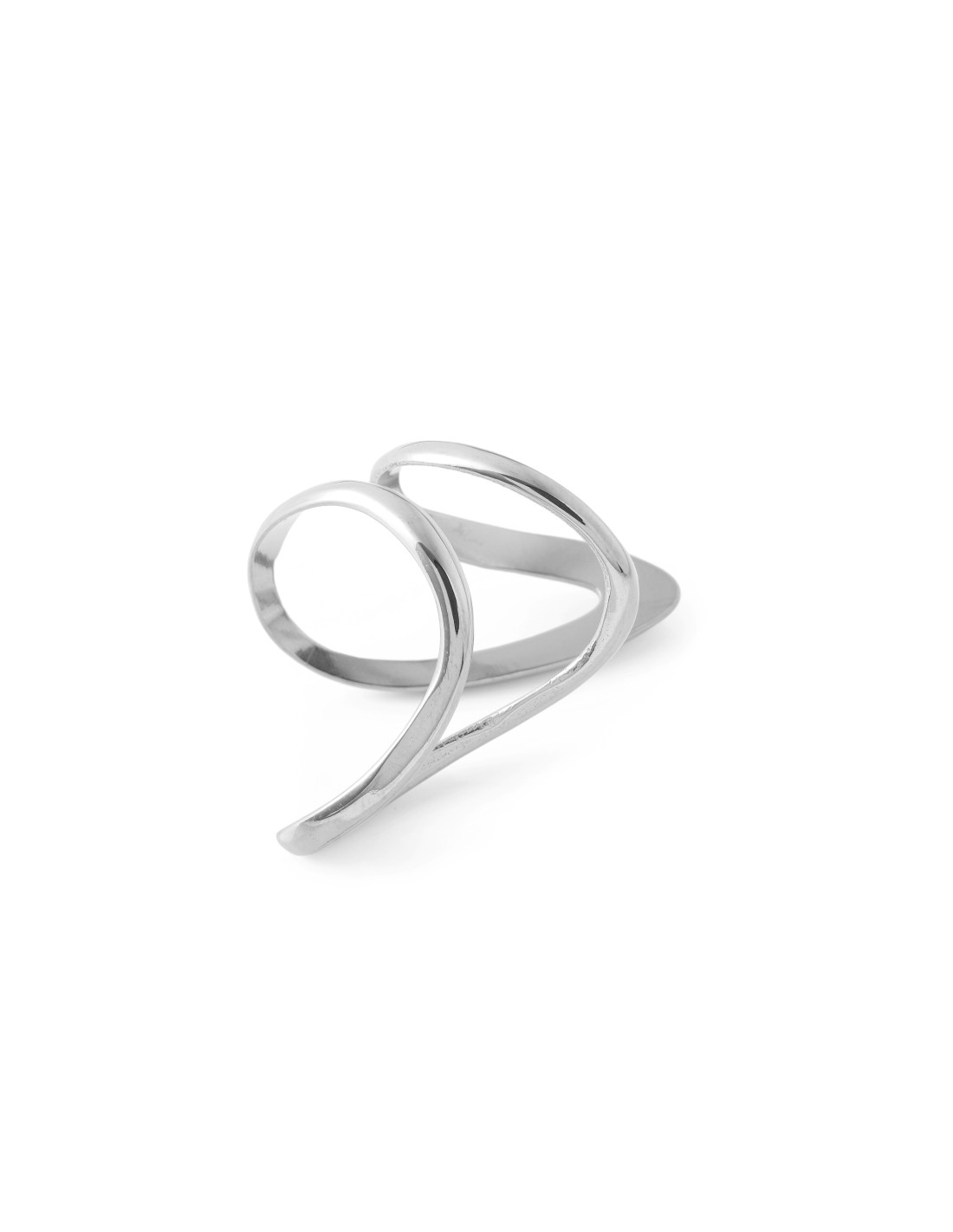 Anillo con forma abierta y líneas entrelazadas, de estilo elegante y contemporáneo. Su brillo pulido realza la feminidad con un toque artístico.