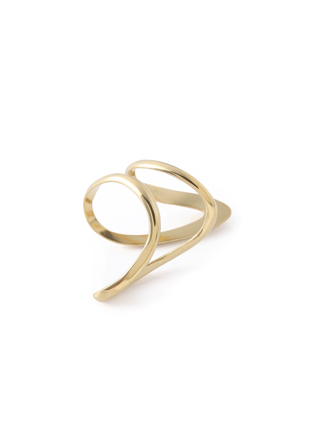 Anillo con forma abierta y líneas entrelazadas, de estilo elegante y contemporáneo. Su brillo pulido realza la feminidad con un toque artístico.