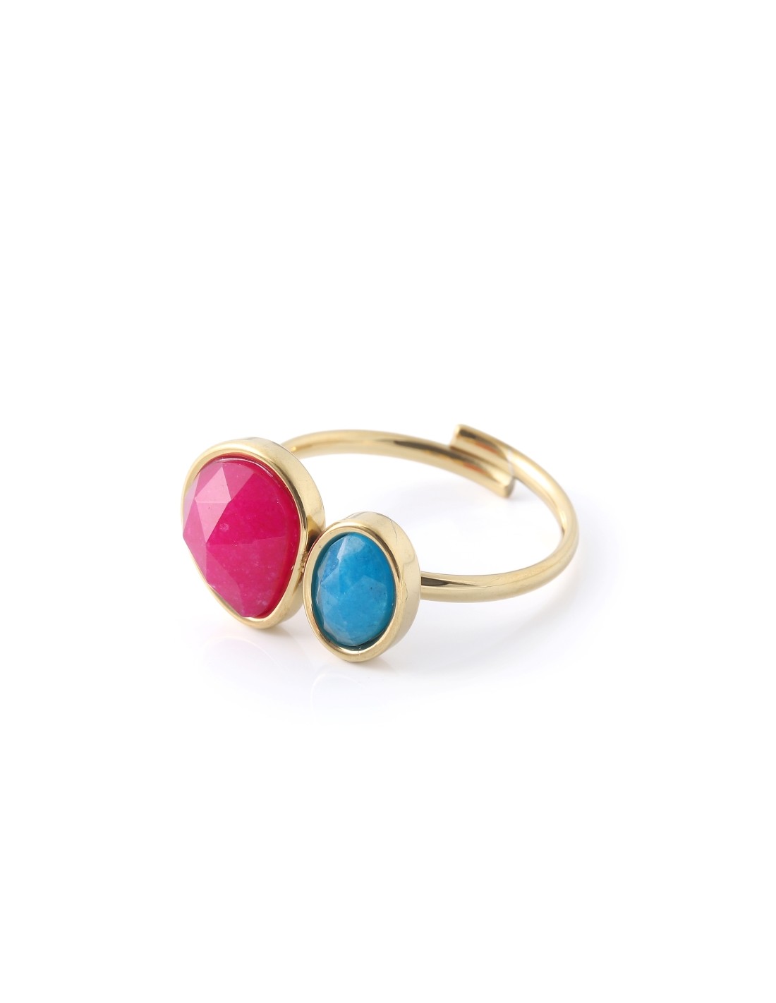 Anillo dorado con diseño abierto adornado con dos piedras tipo jade , de brillo suave y elegante. Una pieza delicada que transmite serenidad y encanto.