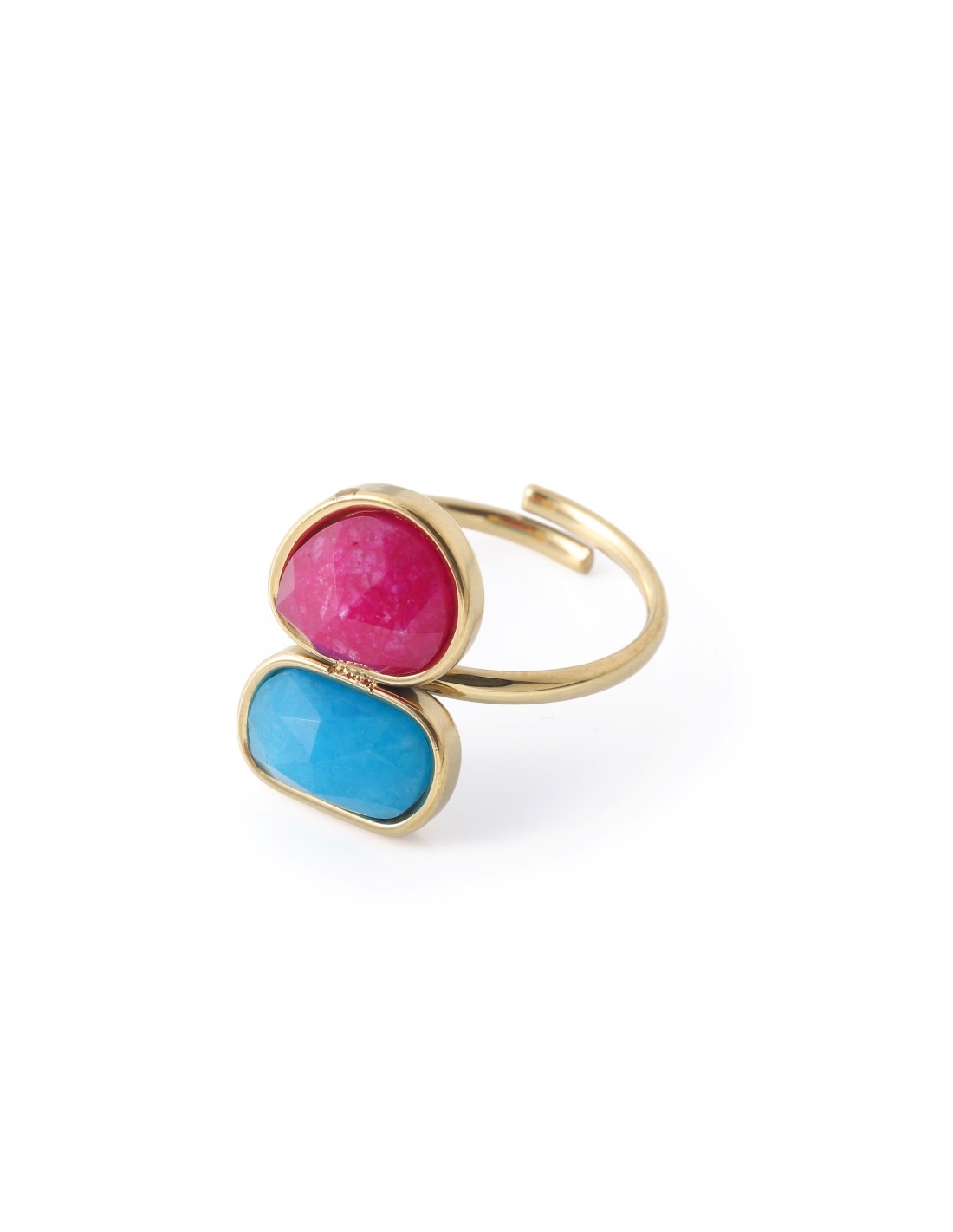 Anillo dorado con diseño abierto adornado con dos piedras tipo jade , de brillo suave y elegante. Una pieza delicada que transmite serenidad y encanto.
