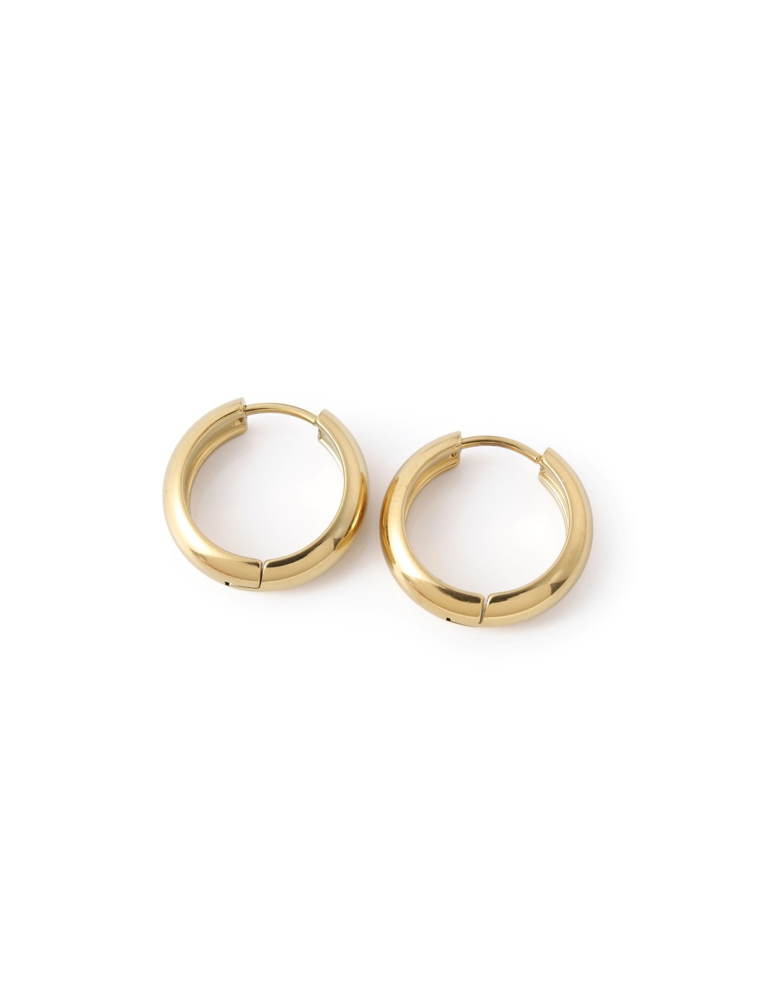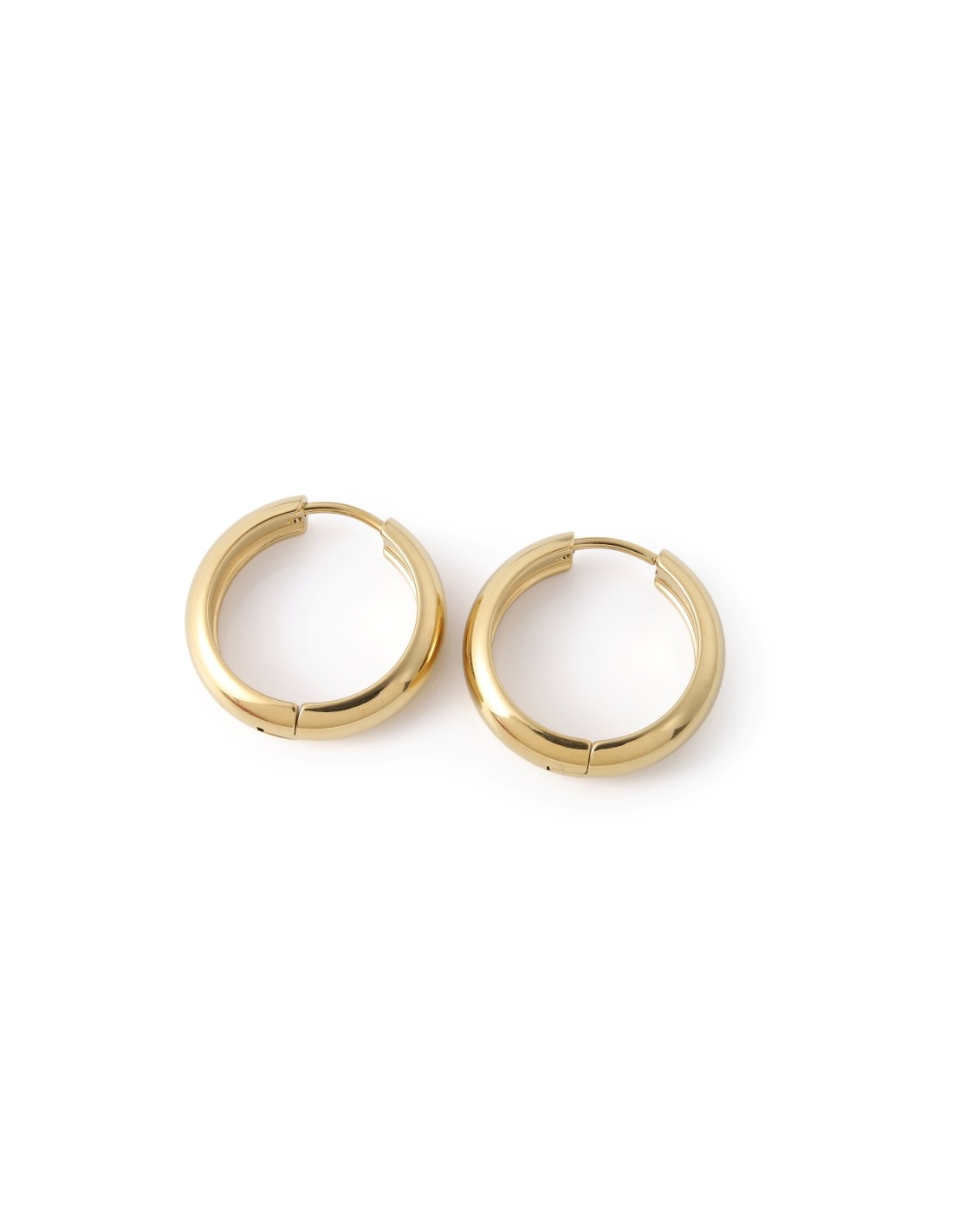 Pendientes de aro dorados gruesos con acabado pulido. Su diseño redondeado aporta un estilo contemporáneo y refinado. Fabricados en acero inoxidable, son resistentes, cómodos y perfectos para cualquier ocasión.
