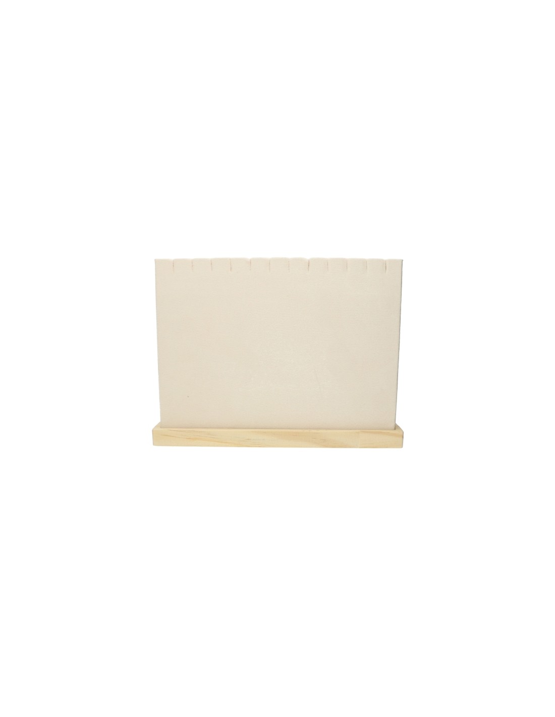 Expositores aptos para pulseras, con una medida de 21cm de largo por 15.5cm de alto y una base de 9.4cm de ancho. Cabe para 12 pulseras.