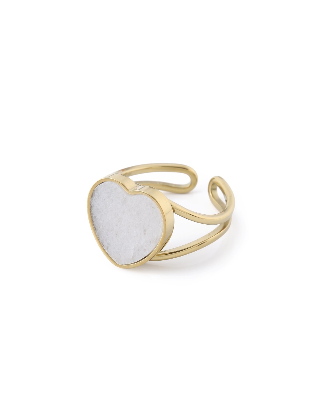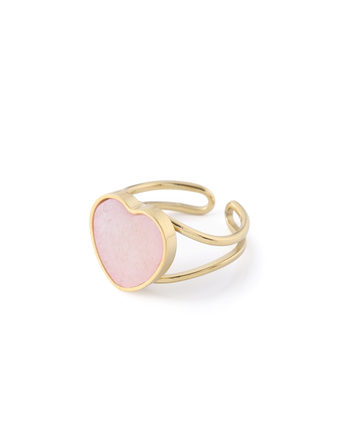 Este anillo dorado presenta un delicado corazón de jade, que aporta un estilo elegante y romántico. Su diseño ajustable lo hace cómodo y perfecto para el uso diario.