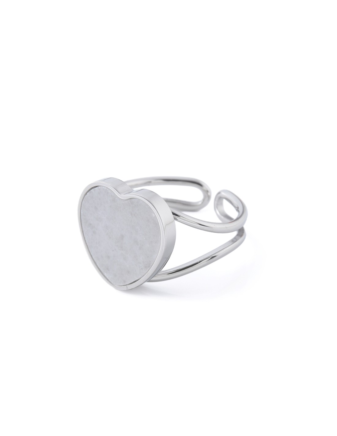 Este anillo dorado presenta un delicado corazón de jade blanco, que aporta un estilo elegante y romántico. Su diseño ajustable lo hace cómodo y perfecto para el uso diario.