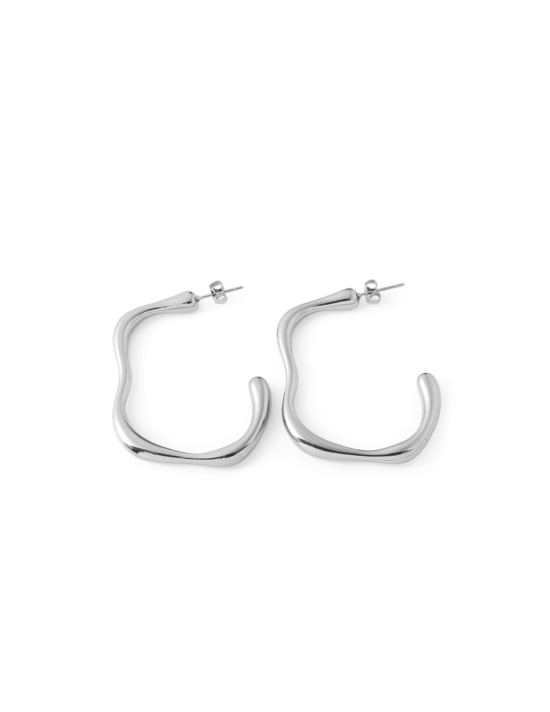 Pendientes de aro plateados con diseño ondulado irregular