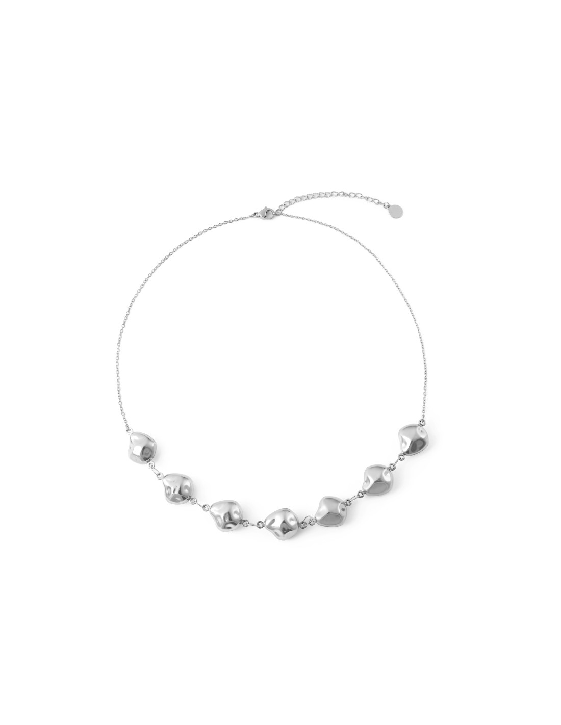 Collar delicado con pequeñas cuentas metálicas de forma irregular, perfecto para añadir un toque elegante y moderno a cualquier look.