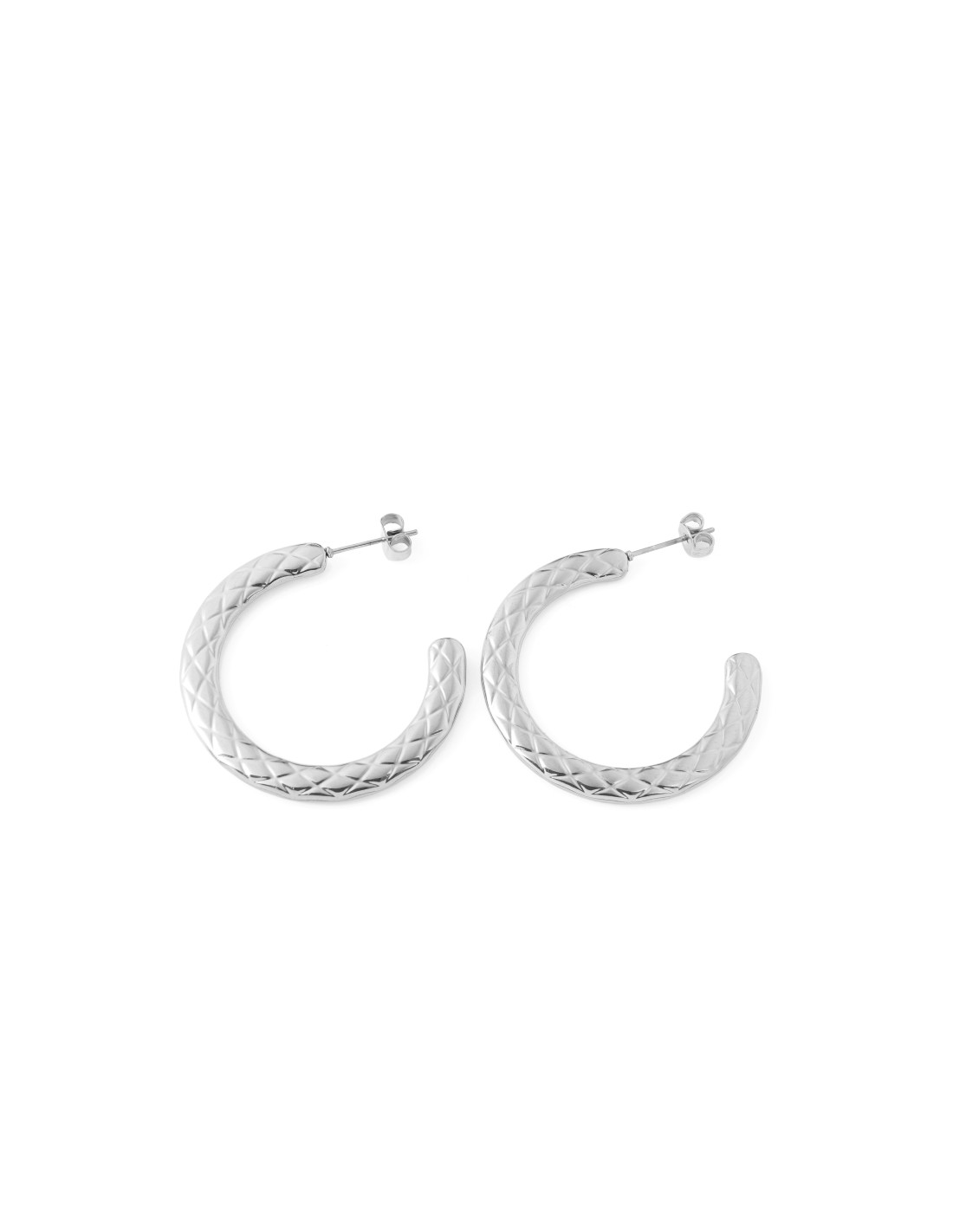 Pendientes de aro con elegante textura geométrica, ideales para un estilo moderno y sofisticado.