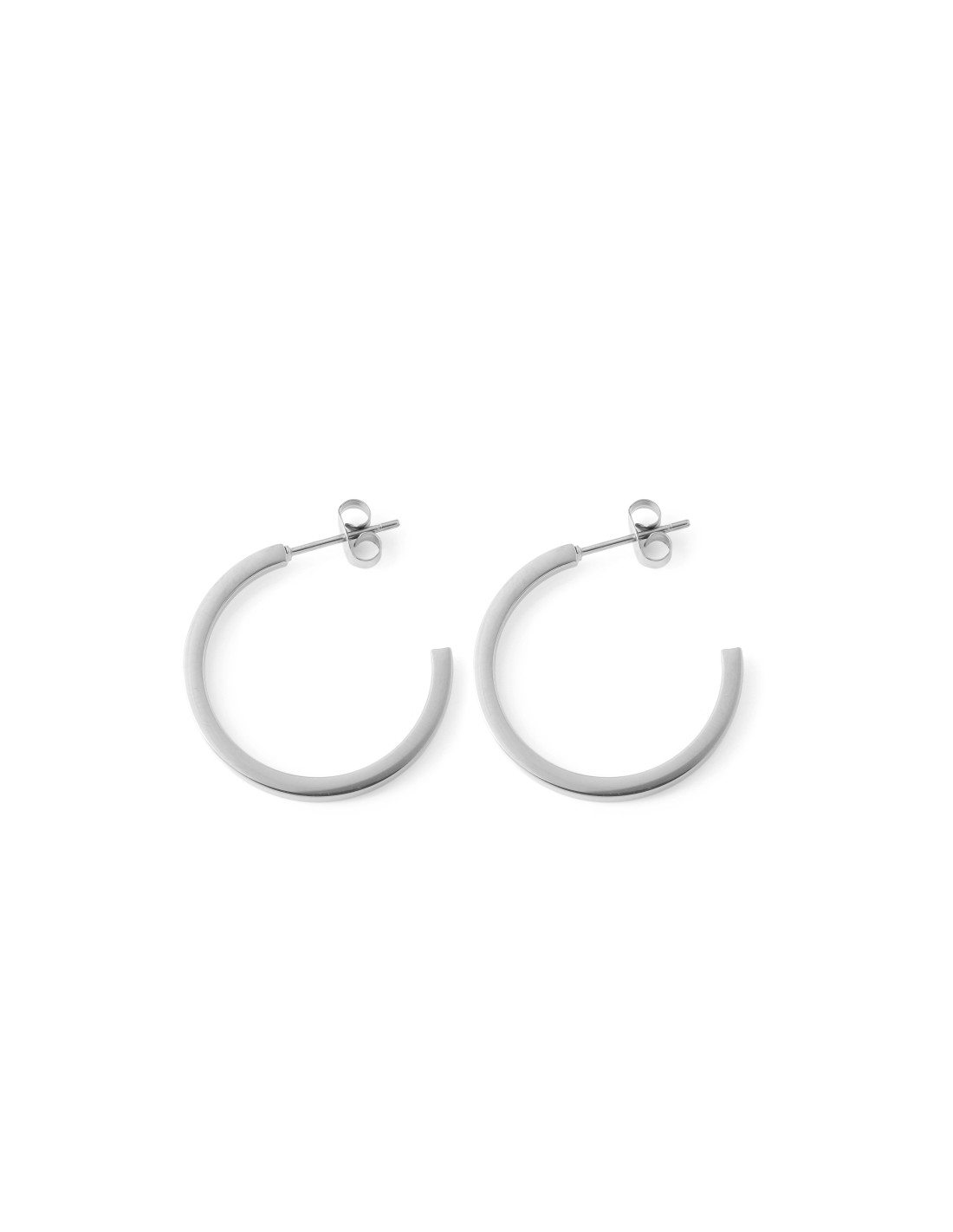 Pendientes de aro plateados de estilo limpio y moderno, perfectos para un look sencillo y elegante.