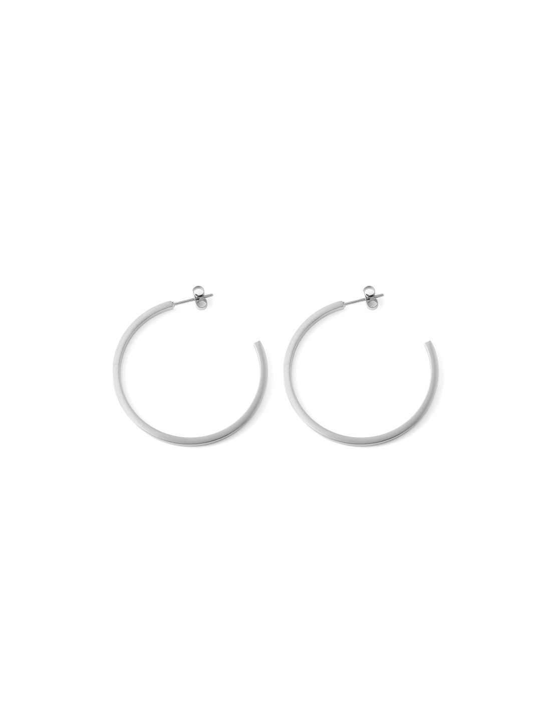 Pendientes de aro plateados de estilo limpio y moderno, perfectos para un look sencillo y elegante.