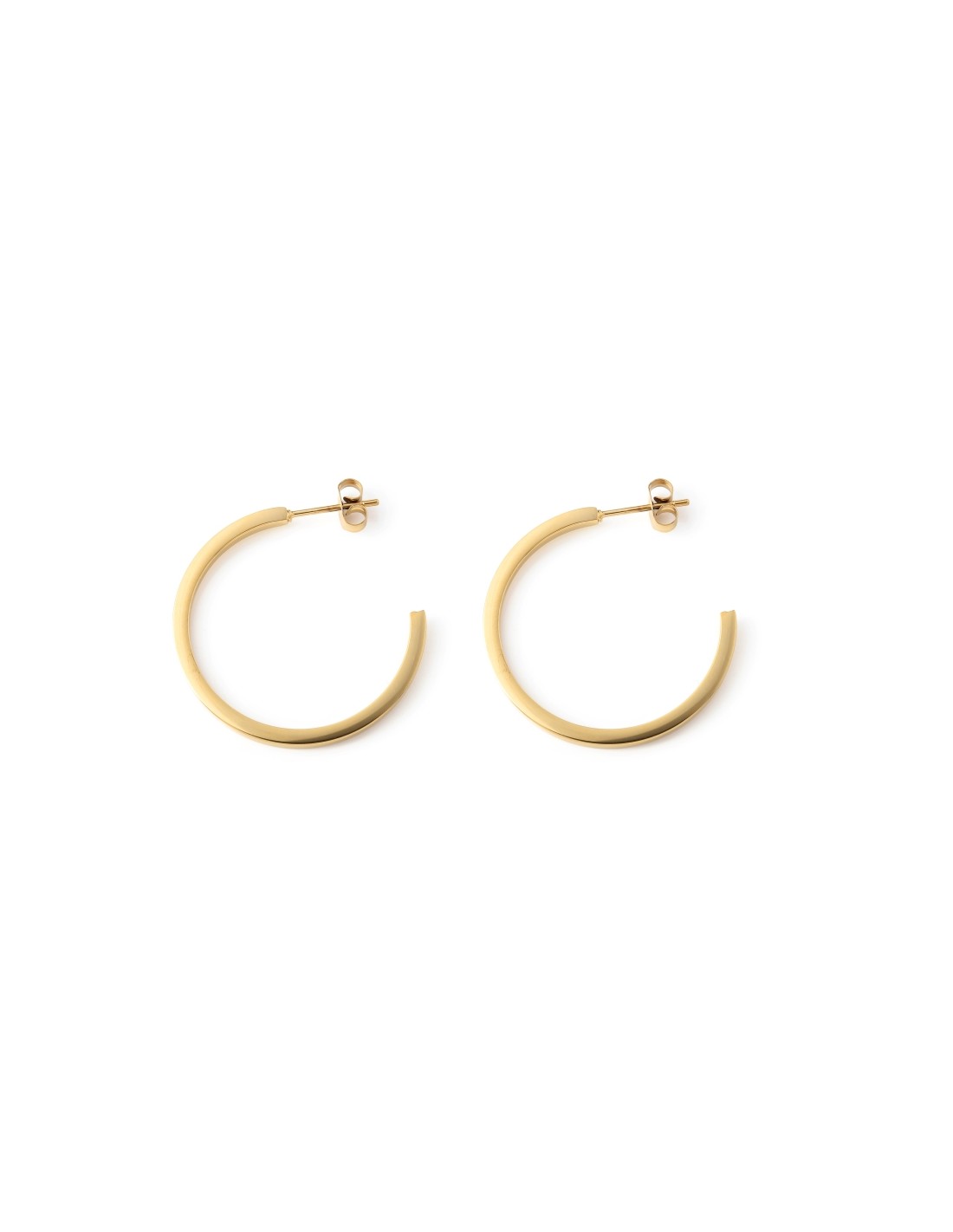 Pendientes de aro dorados de estilo limpio y moderno, perfectos para un look sencillo y elegante.