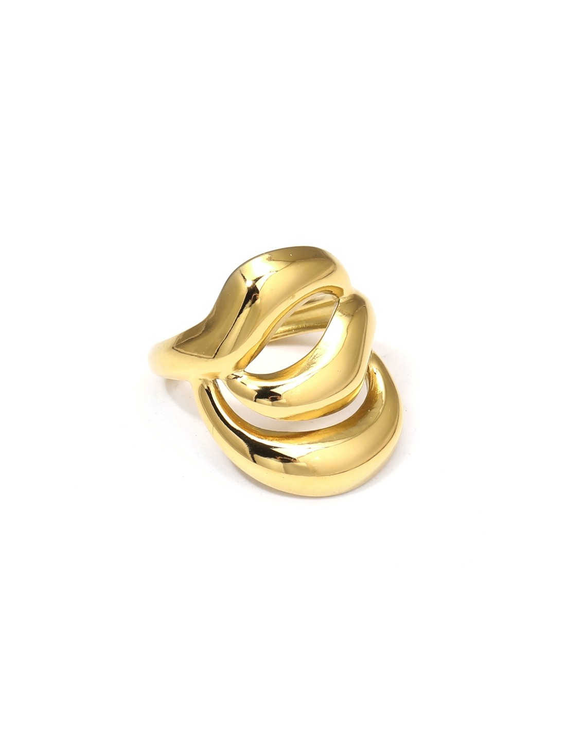 Anillo con un diseño moderno de líneas curvas que crean un efecto voluminoso. Es un accesorio cómodo y de tendencia, perfecto para el uso diario.