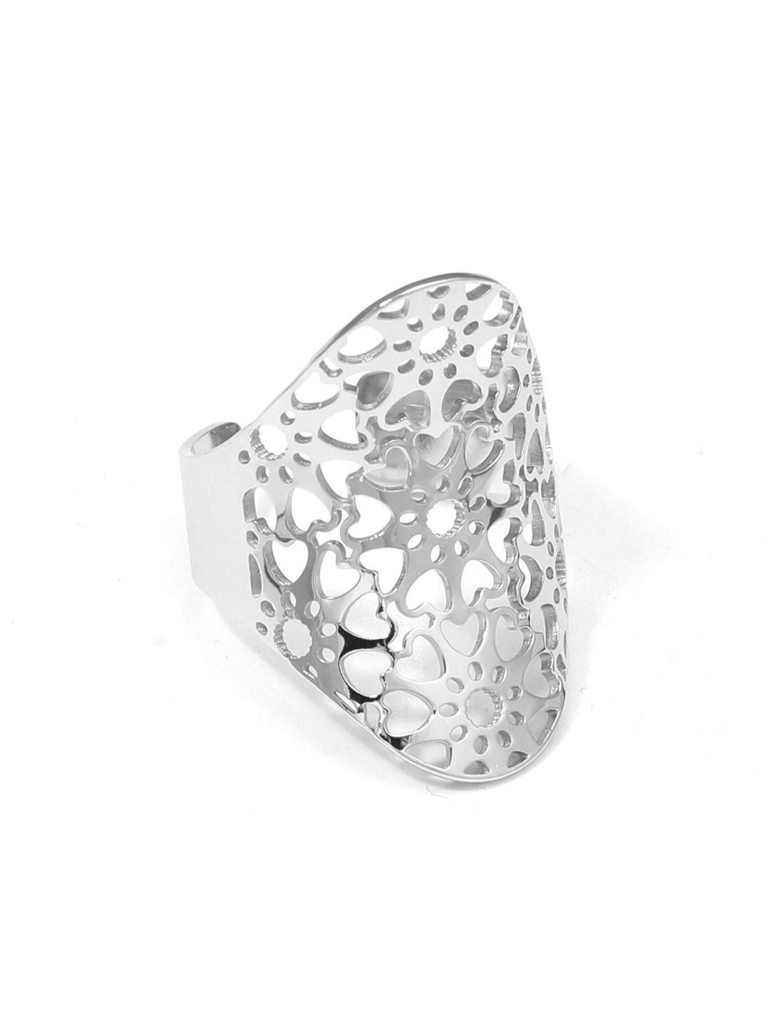 Anillo plateado con delicados corazones calados, elegente y románticos.