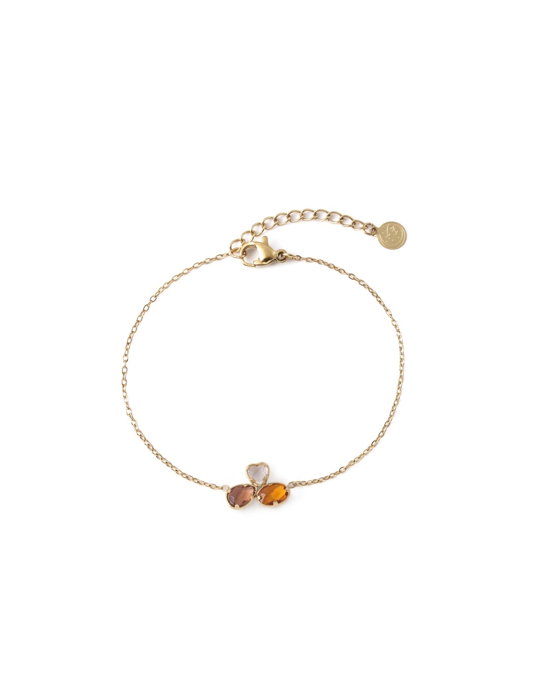 Pulsera dorado delicada con cristales de colores que aporta un brillo suave y elegante.