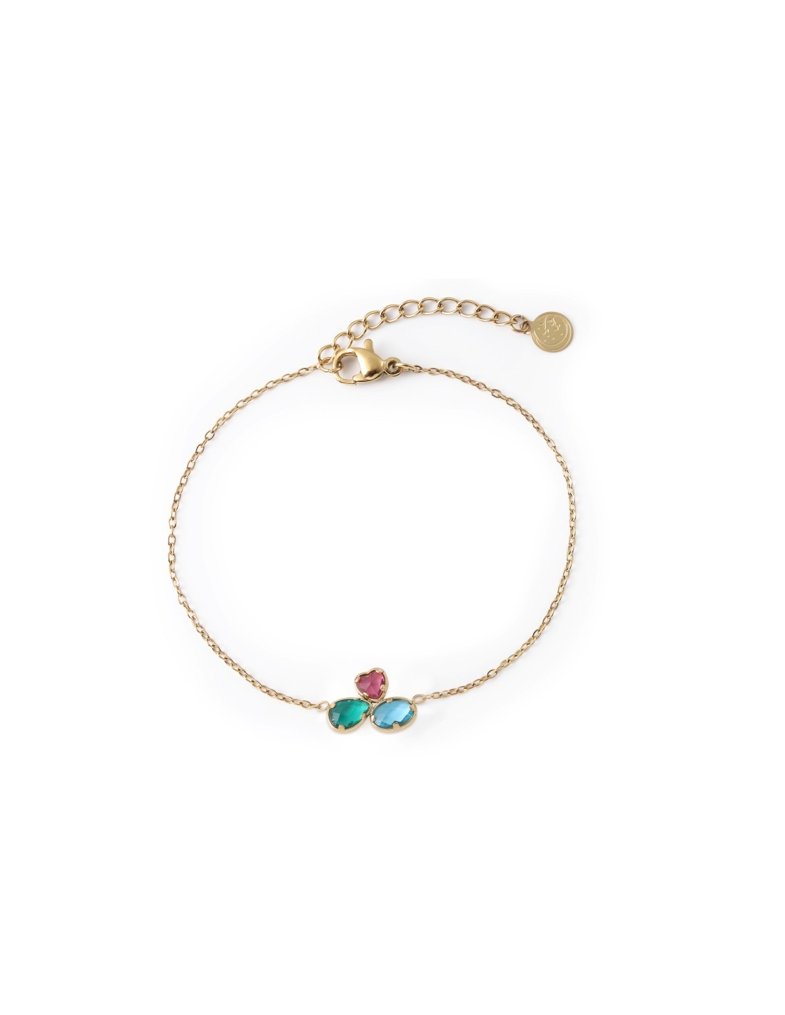 Pulsera dorado delicada con cristales de colores que aporta un brillo suave y elegante.
