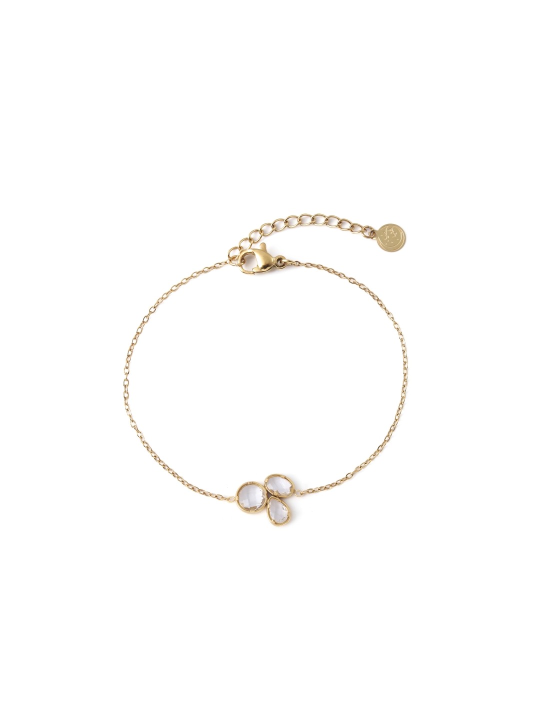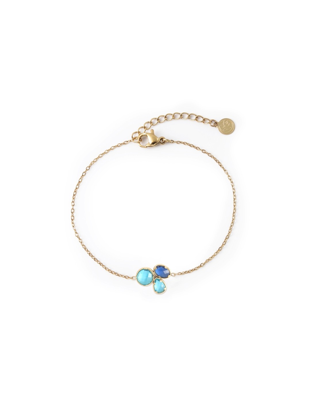 Pulsera dorado delicada con cristales de colores que aporta un brillo suave y elegante.