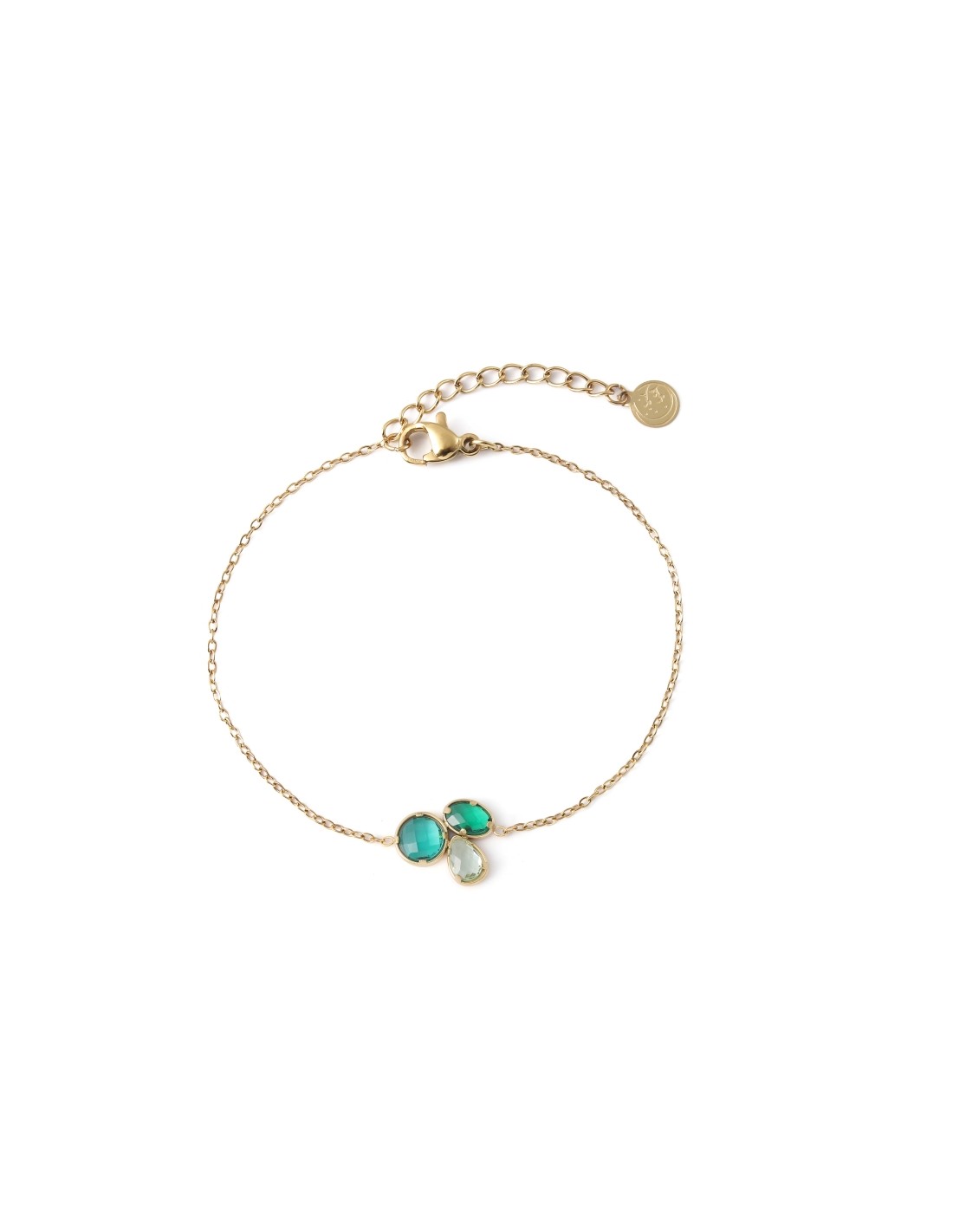 Pulsera dorado delicada con cristales de colores que aporta un brillo suave y elegante.