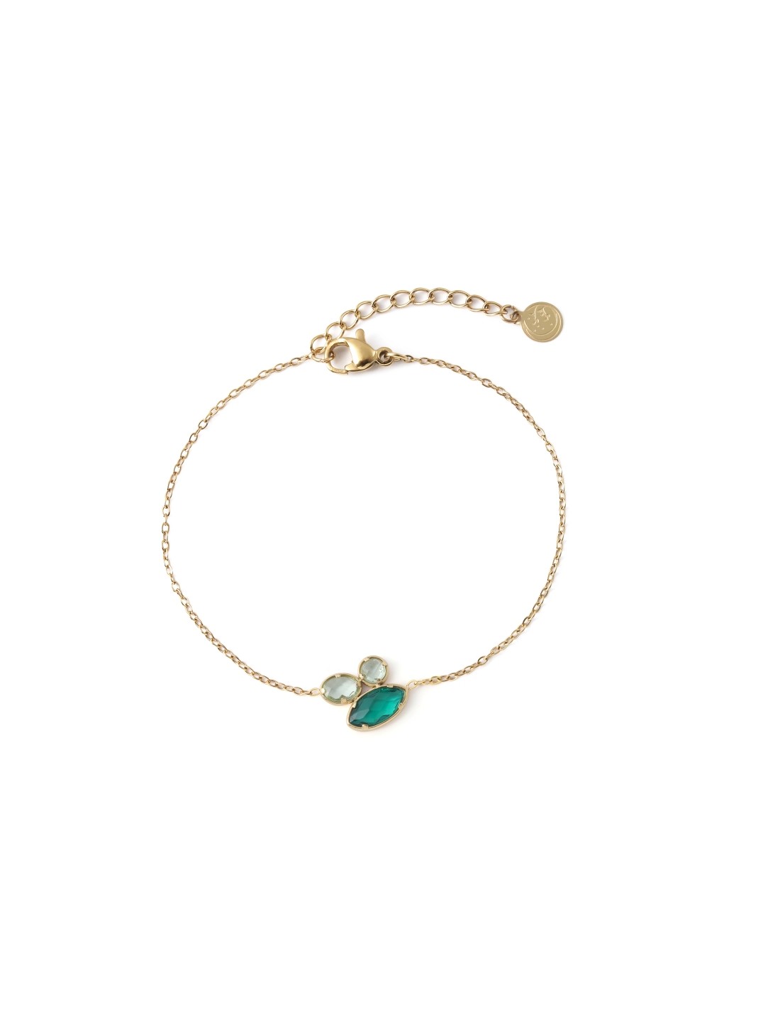 Pulsera dorado delicada con cristales de colores que aporta un brillo suave y elegante.