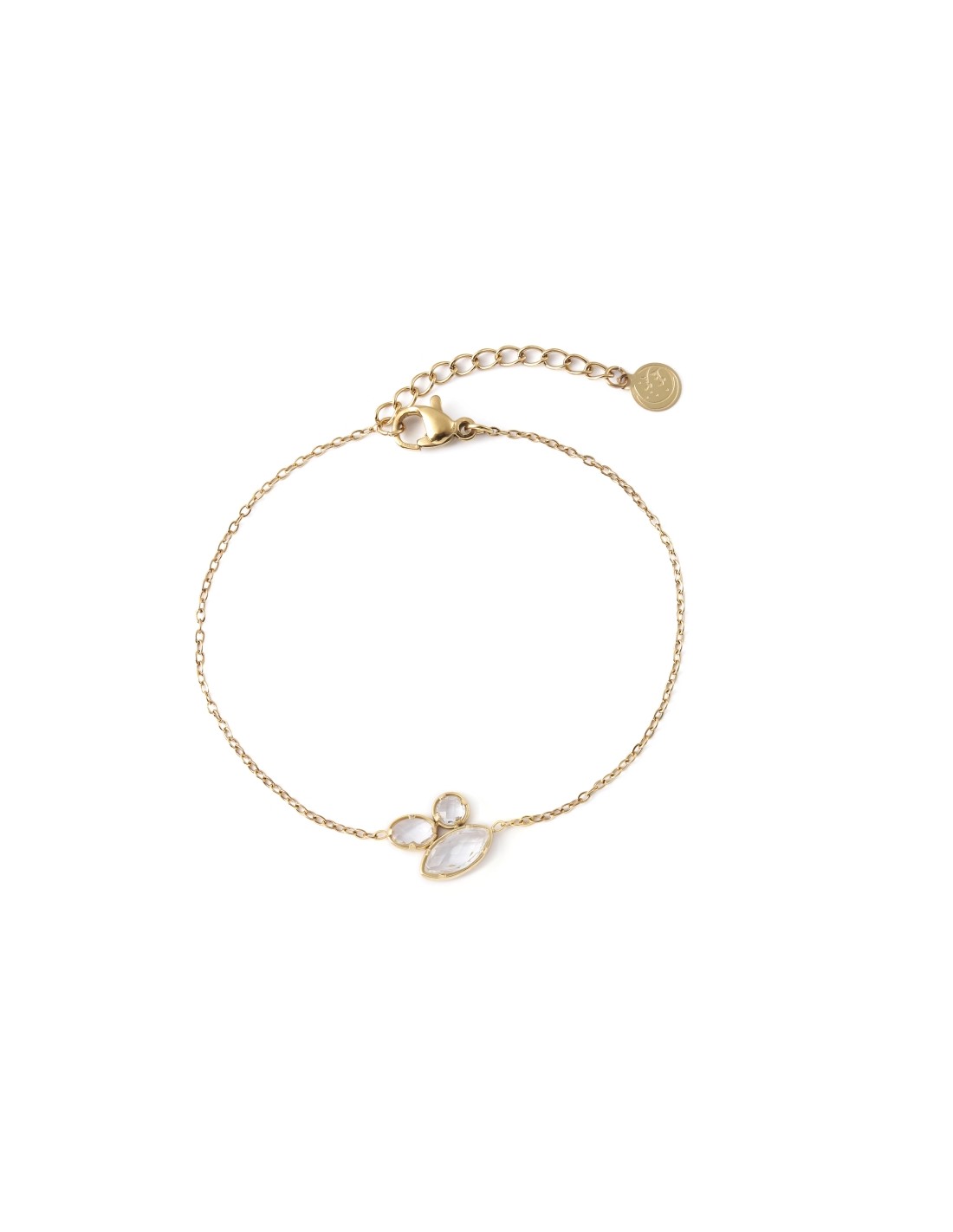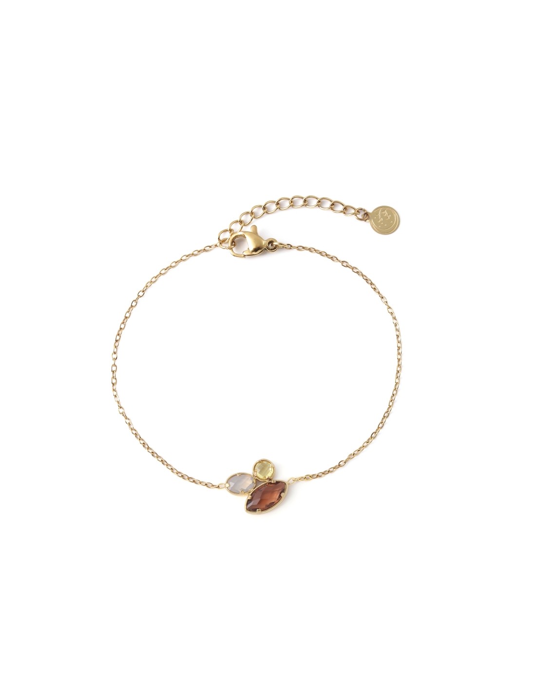 Pulsera dorado delicada con cristales de colores que aporta un brillo suave y elegante.