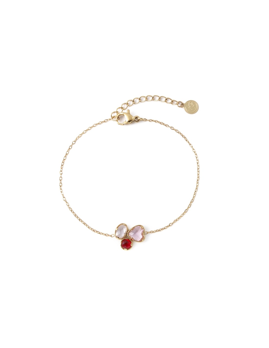 Pulsera dorado delicada con cristales de colores que aporta un brillo suave y elegante.