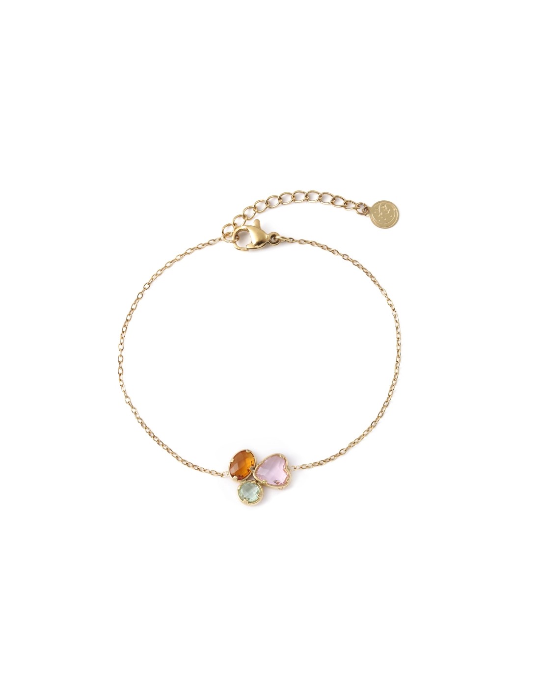 Pulsera dorado delicada con cristales de colores que aporta un brillo suave y elegante.