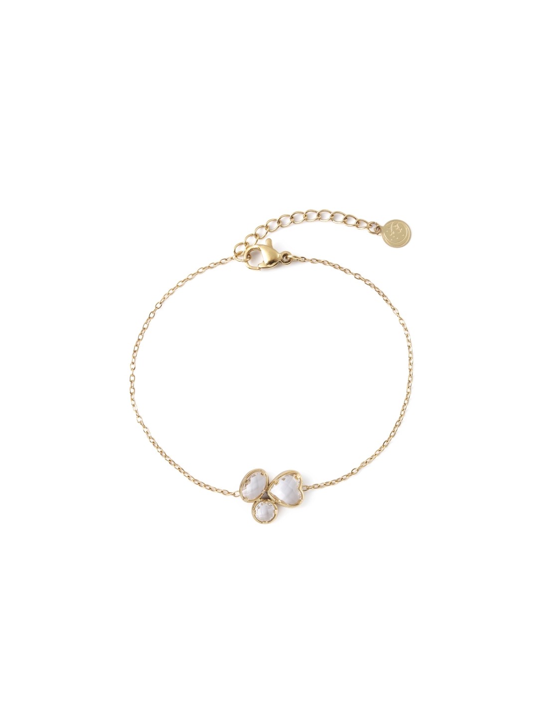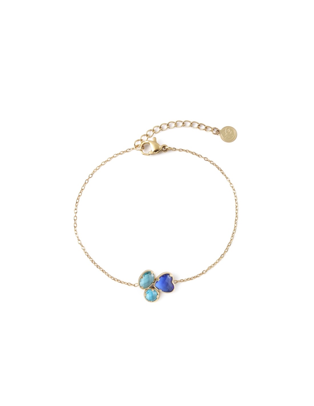 Pulsera dorado delicada con cristales de colores que aporta un brillo suave y elegante.