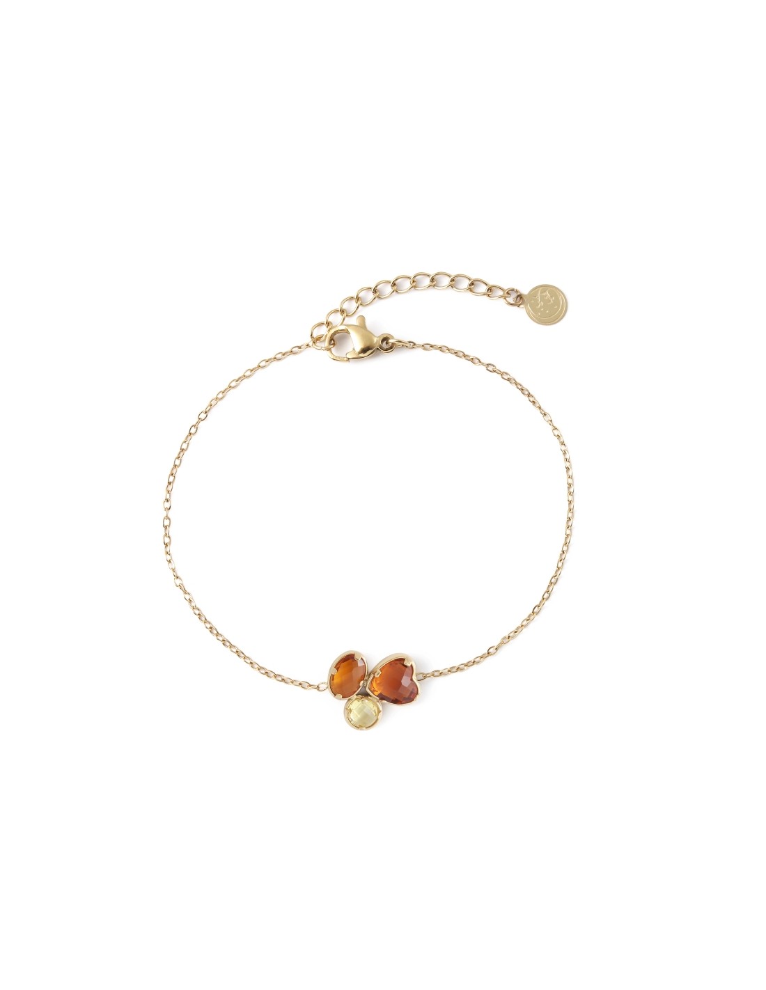 Pulsera dorado delicada con cristales de colores que aporta un brillo suave y elegante.