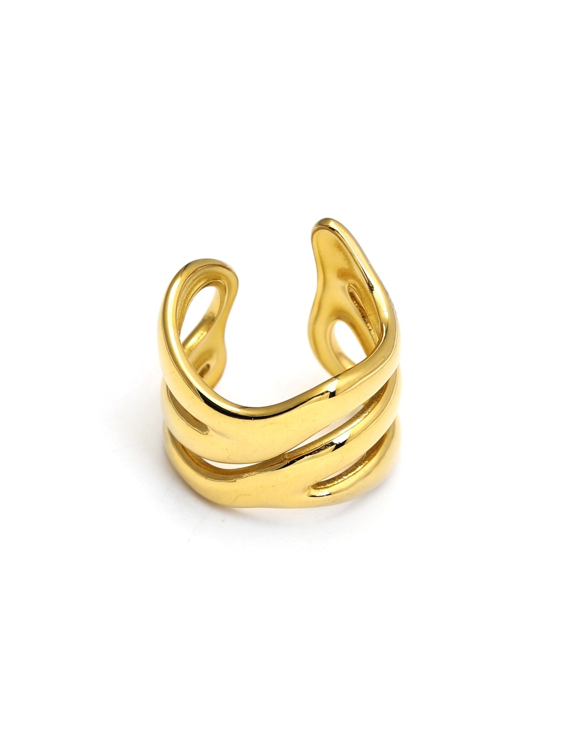 Anillo con diseño de ondas superpuestas con líneas suaves que aportan un estilo moderno y versátil.