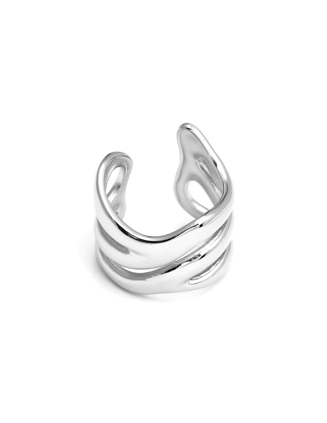 Anillo con diseño de ondas superpuestas con líneas suaves que aportan un estilo moderno y versátil.