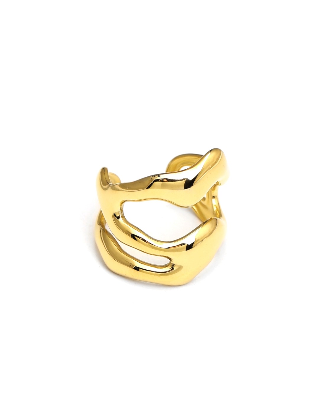 Anillo con curvas suaves dispuestas en capas que aportan volumen y sofisticación al diseño.