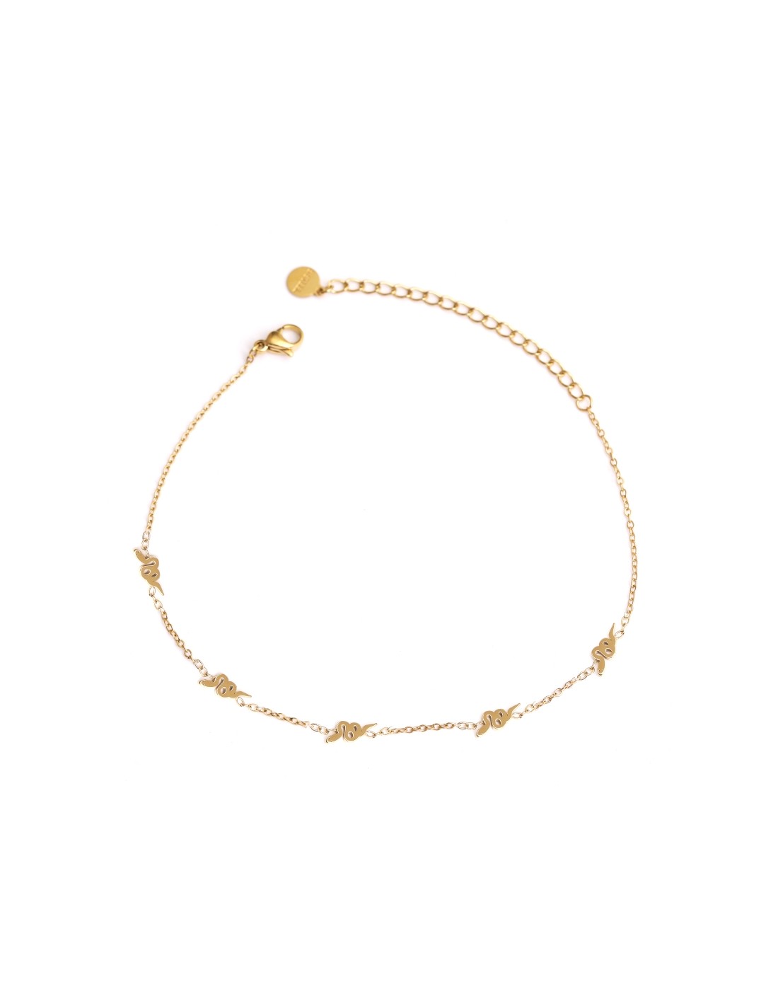 Tobillera fina con pequeños colgantes de serpiente, delicada y elegante.