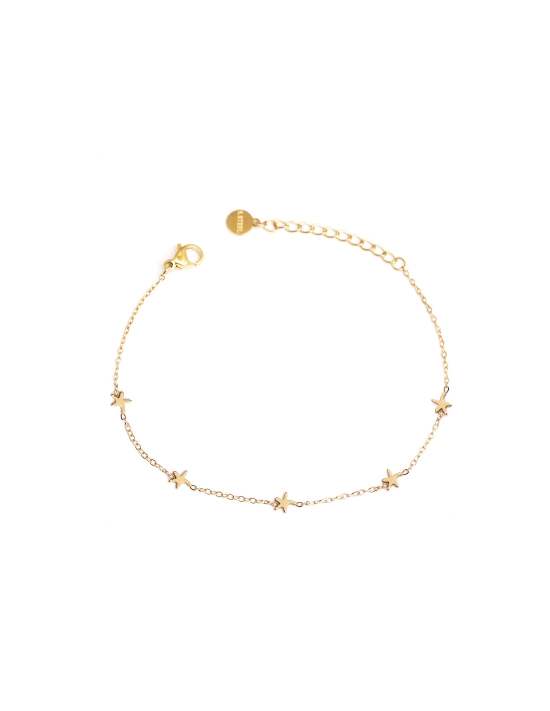 Pulsera fina con pequeños colgantes de estrellas de mar, elegante y minimalista.