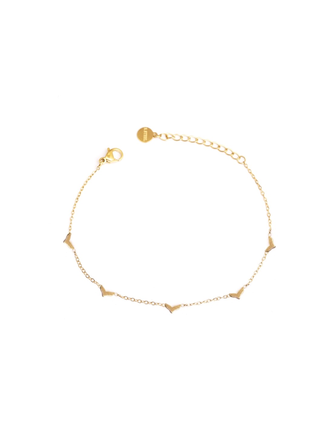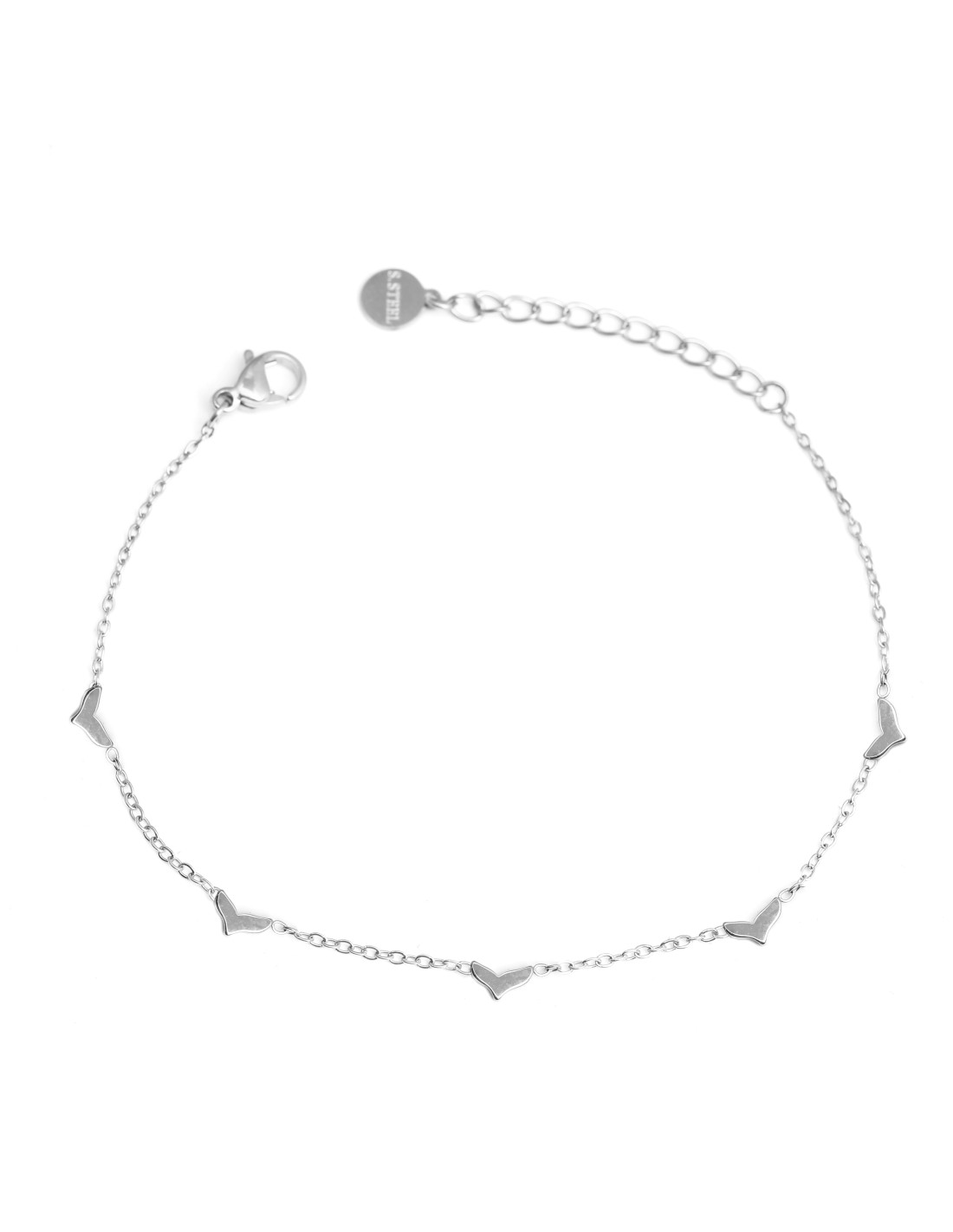 Pulsera fina con pequeños colgantes de cola de pez, elegante y minimalista.