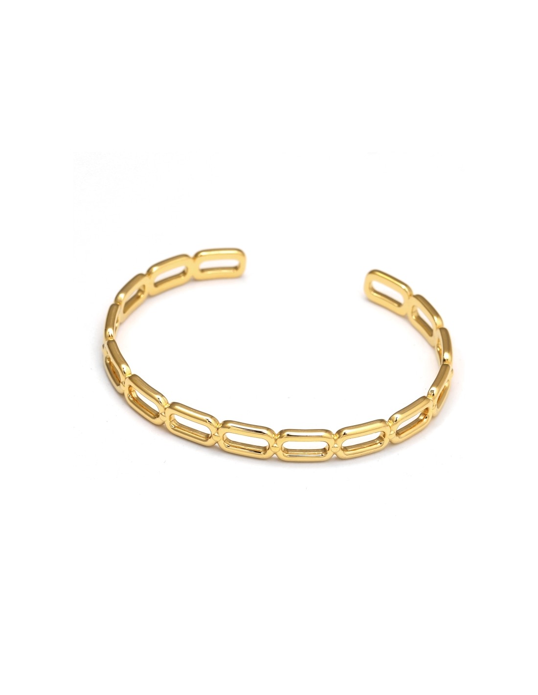Pulsera rígida plateada formada por una hilera de eslabones de óvalos calados unidos.Ideal para el uso diario o como un regalo especial.