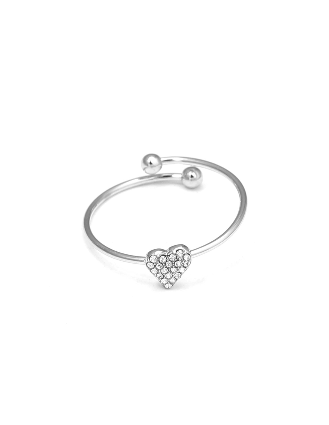 Anillo plateado en forma de media corazón adornado con brillantes circonitas. Su estilo abierto permite un ajuste cómodo, combinando elegancia minimalista con un toque romántico.